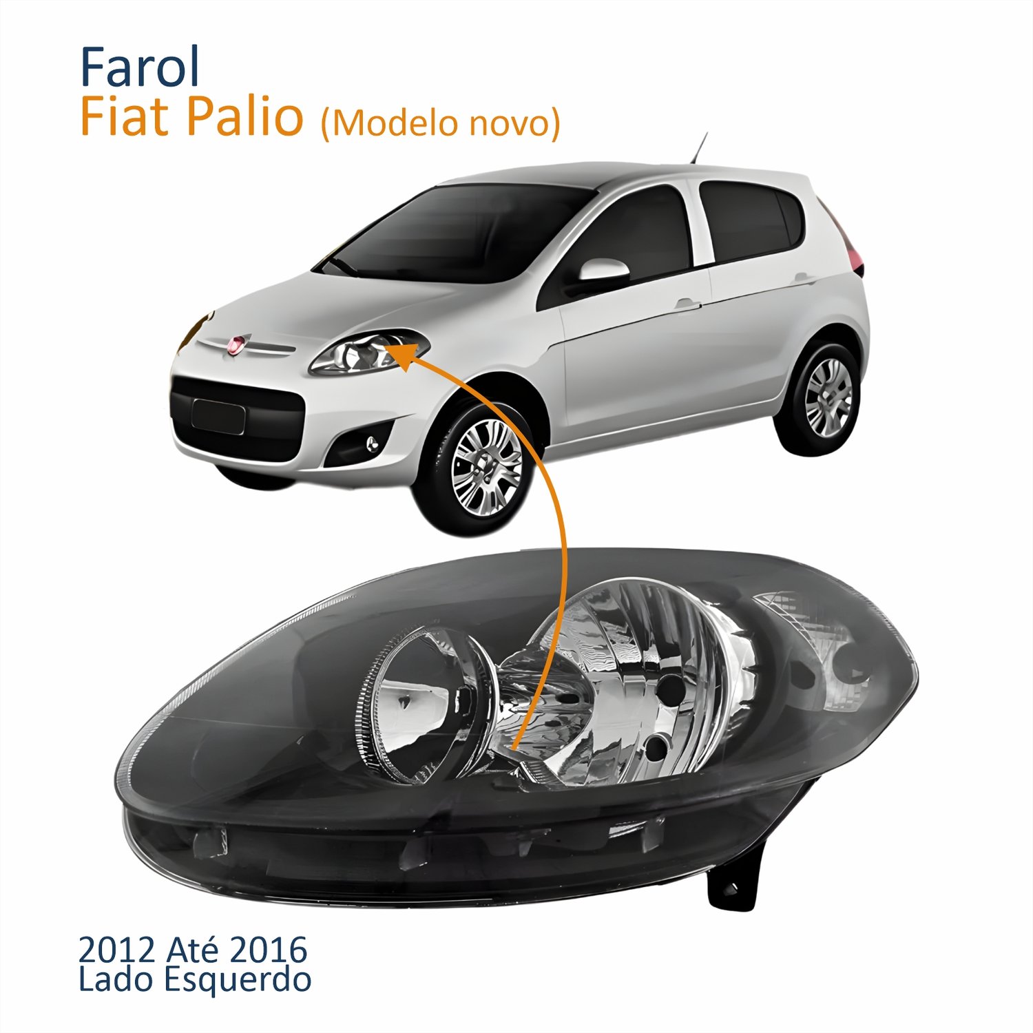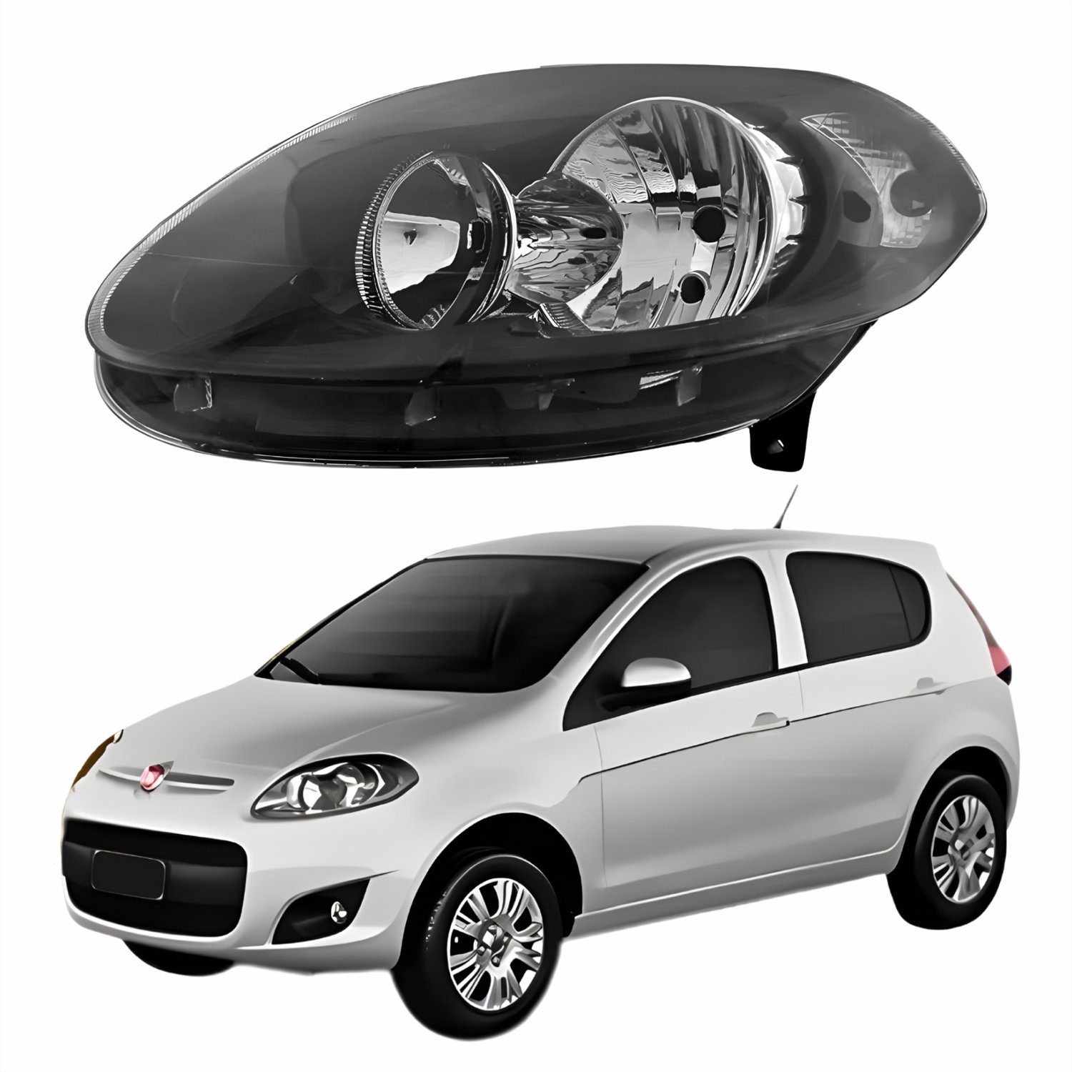 Farol Principal Fiat Palio 2012 2013 2014 2015 2016 Máscara Negra Lado Esquerdo Motorista