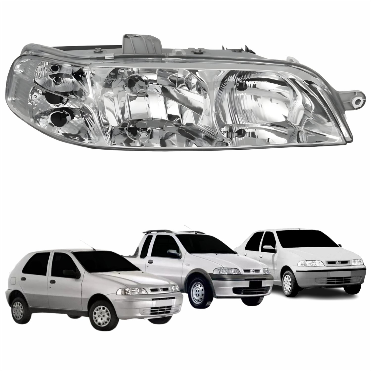 Farol Principal Fiat Palio Siena Strada 2001 2002 2003 2004 Carcaça Cinza Lado Direito Passageiro