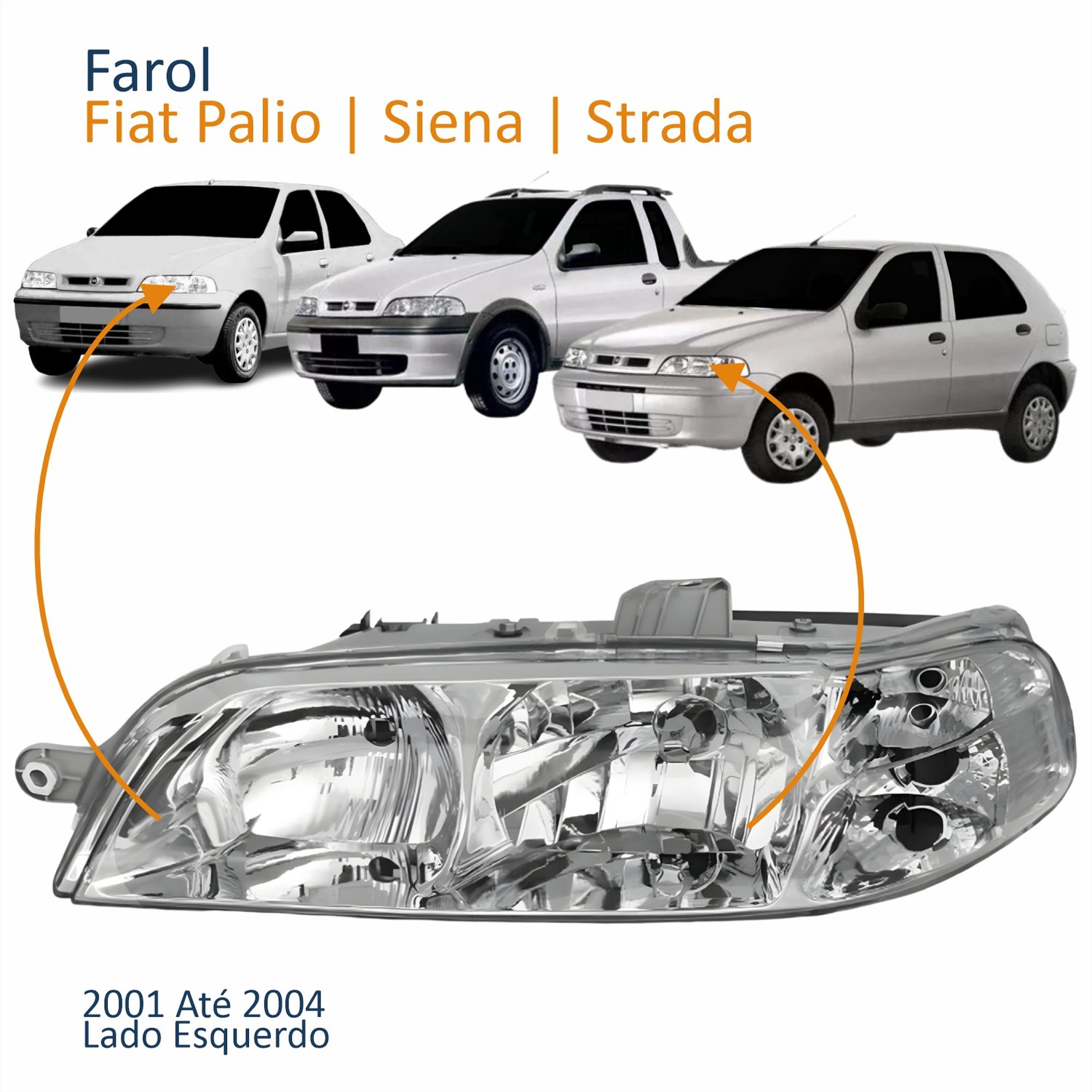 Farol Principal Fiat Palio Siena Strada 2001 2002 2003 2004 Carcaça Cinza Lado Esquerdo Motorista