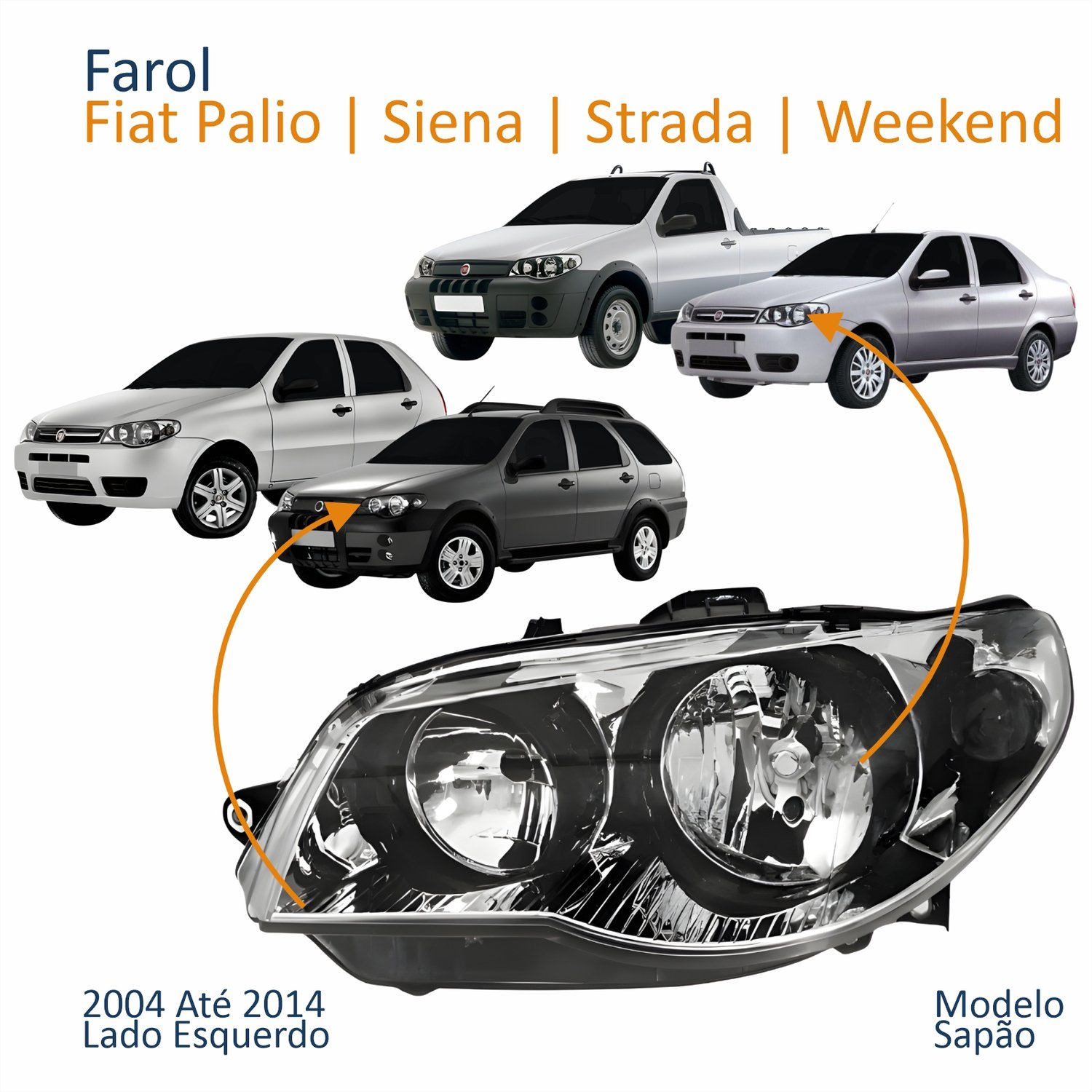 Farol Principal Fiat Palio Strada 2004 Até 2014 Siena Weekend 2004 Até 2007 Máscara Cromada Anel Negro Lado Esquerdo Motorista