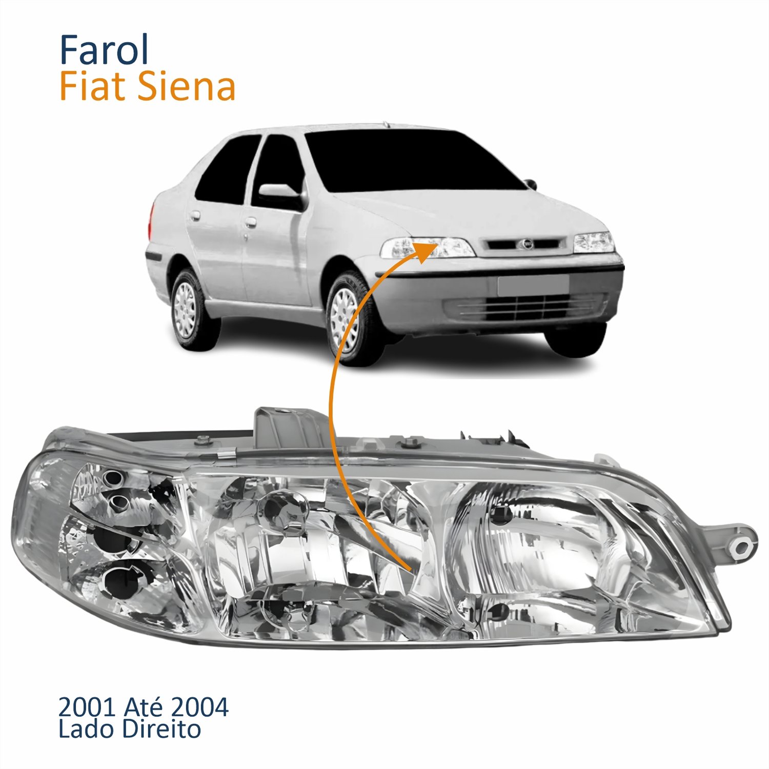 Farol Principal Fiat Siena 2001 2002 2003 2004 Carcaça Cinza Lado Direito Passageiro