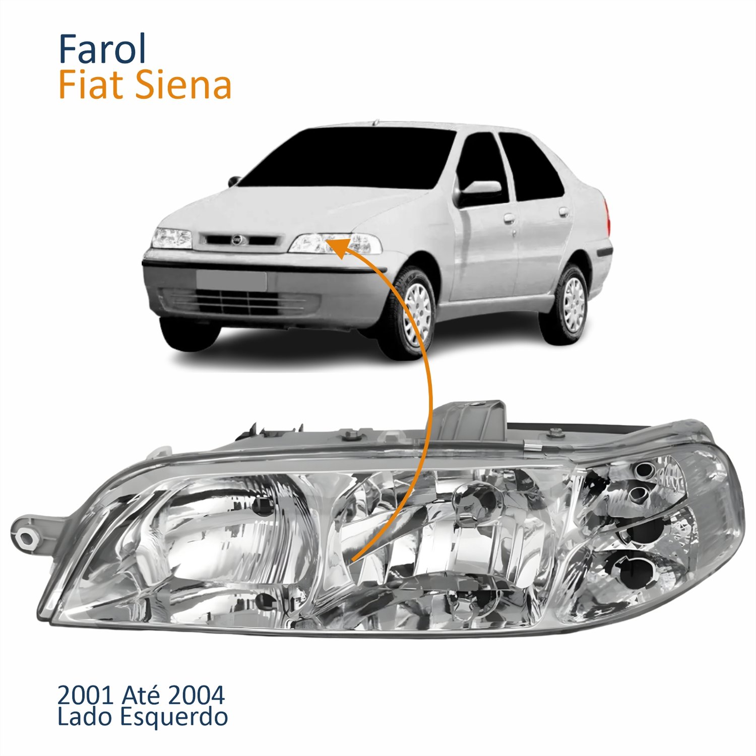 Farol Principal Fiat Siena 2001 2002 2003 2004 Carcaça Cinza Lado Esquerdo Motorista