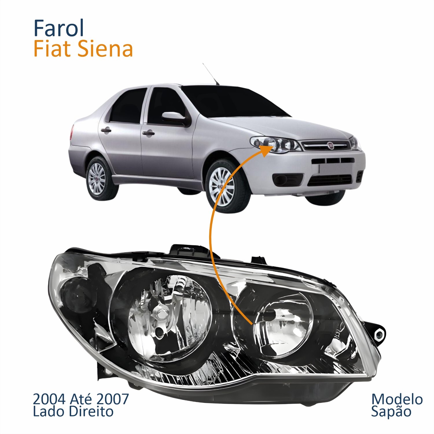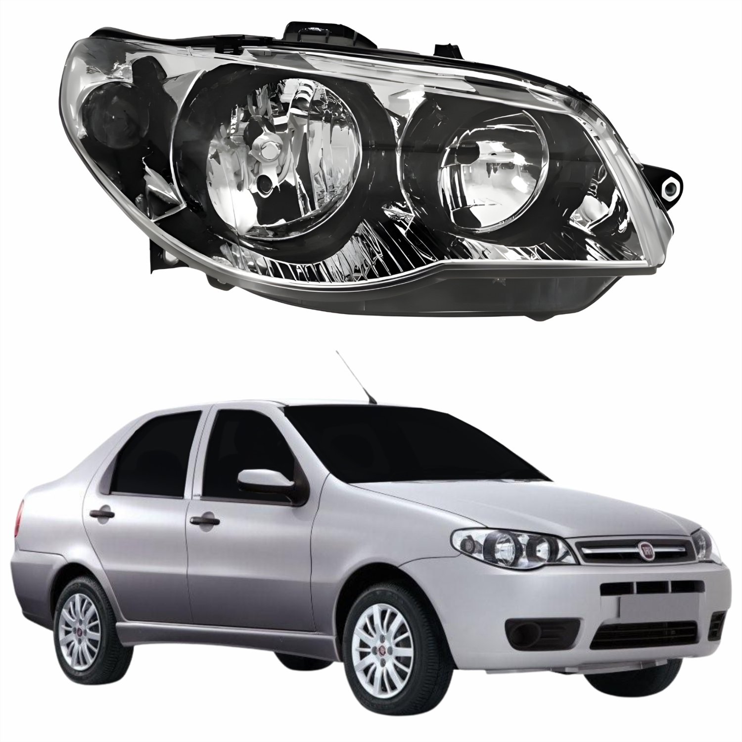Farol Principal Fiat Siena 2004 Até 2007 Máscara Cromada Anel Negro Lado Direito Passageiro