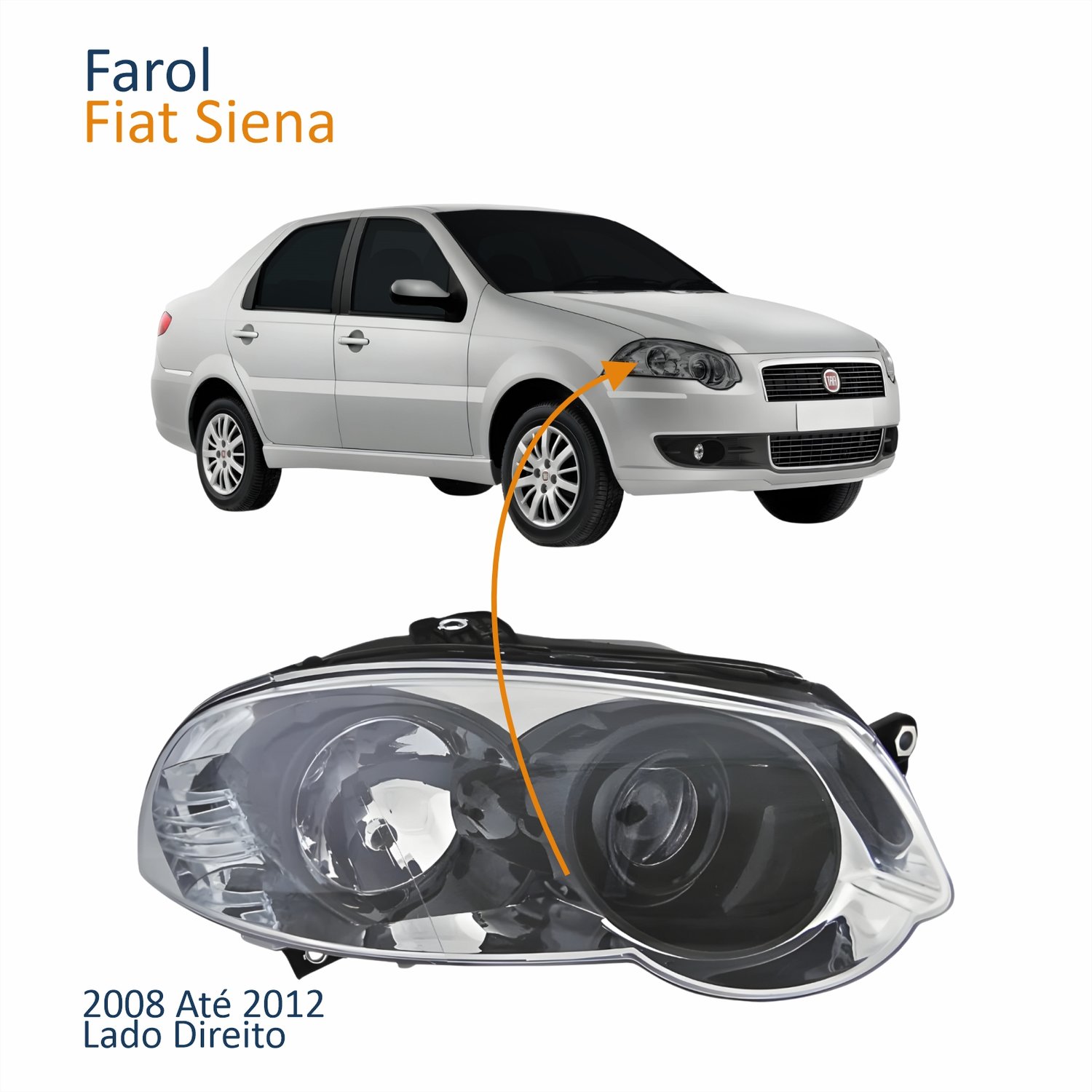 Farol Principal Fiat Siena 2008 Até 2012 Máscara Cromada Anel Negro Lado Direito Passageiro
