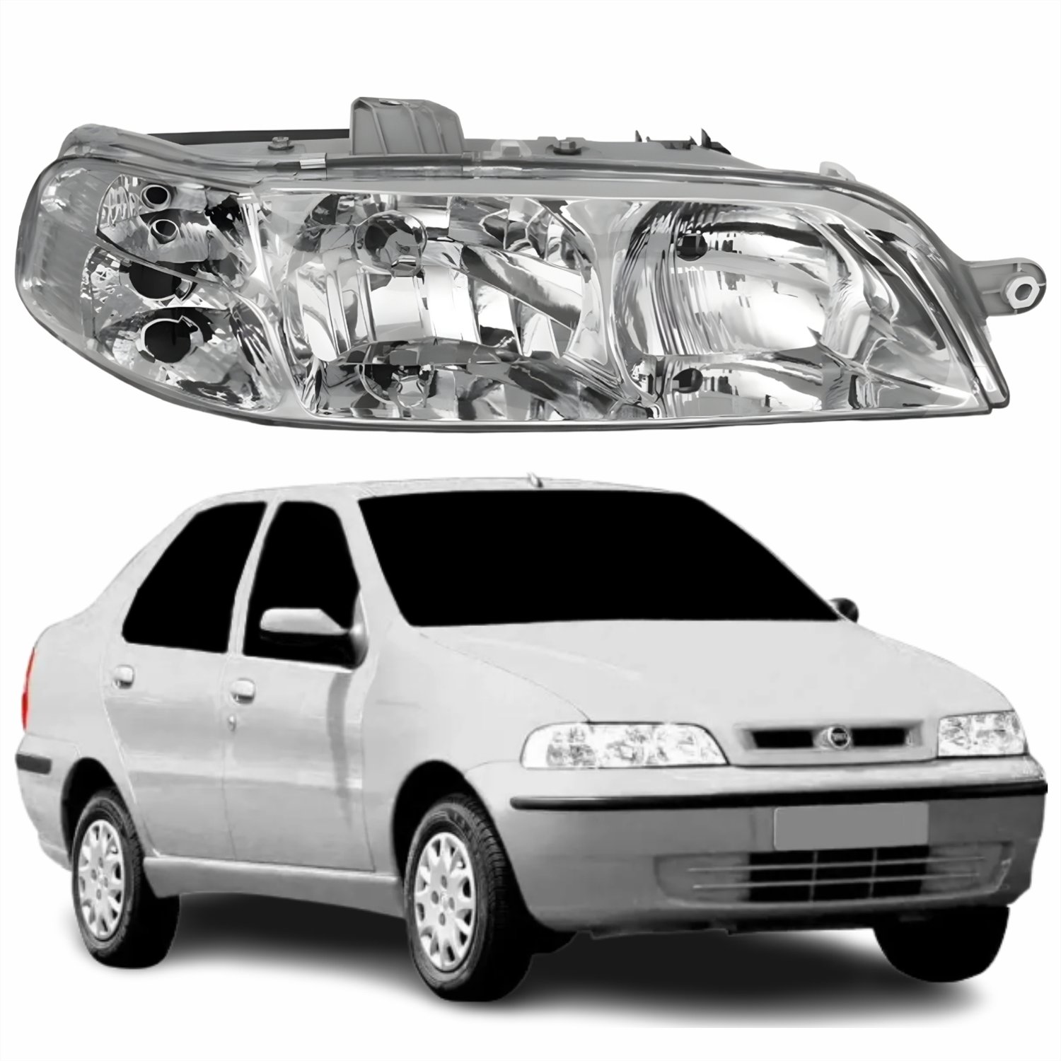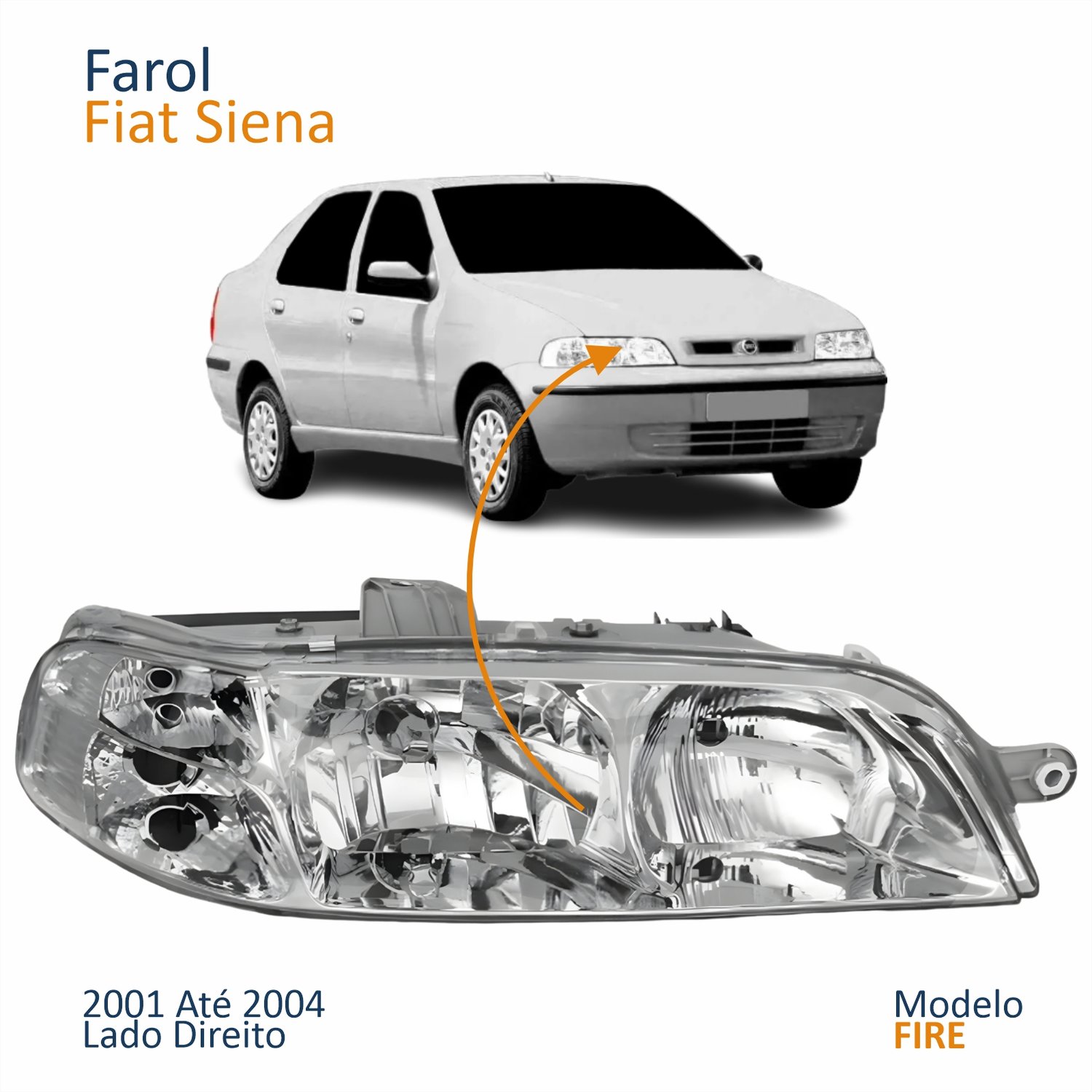 Farol Principal Fiat Siena Fire 2001 2002 2003 2004 Carcaça Cinza Lado Direito Passageiro