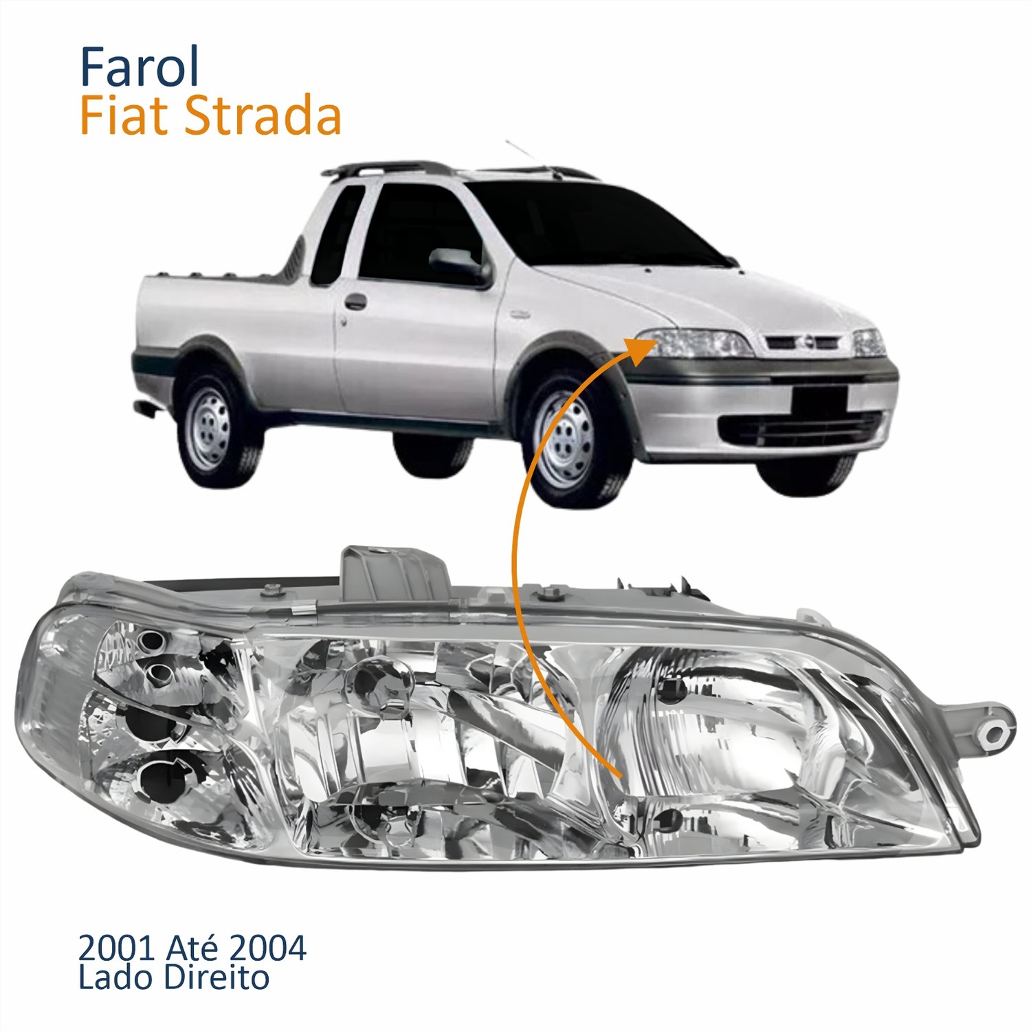 Farol Principal Fiat Strada 2001 2002 2003 2004 Carcaça Cinza Lado Direito Passageiro