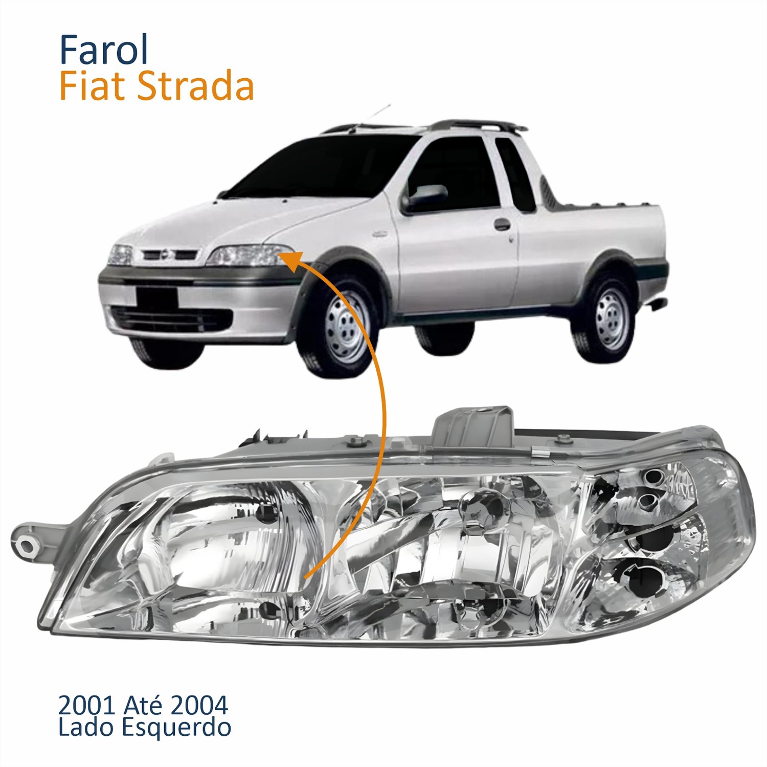 Farol Principal Fiat Strada 2001 2002 2003 2004 Carcaça Cinza Lado Esquerdo Motorista