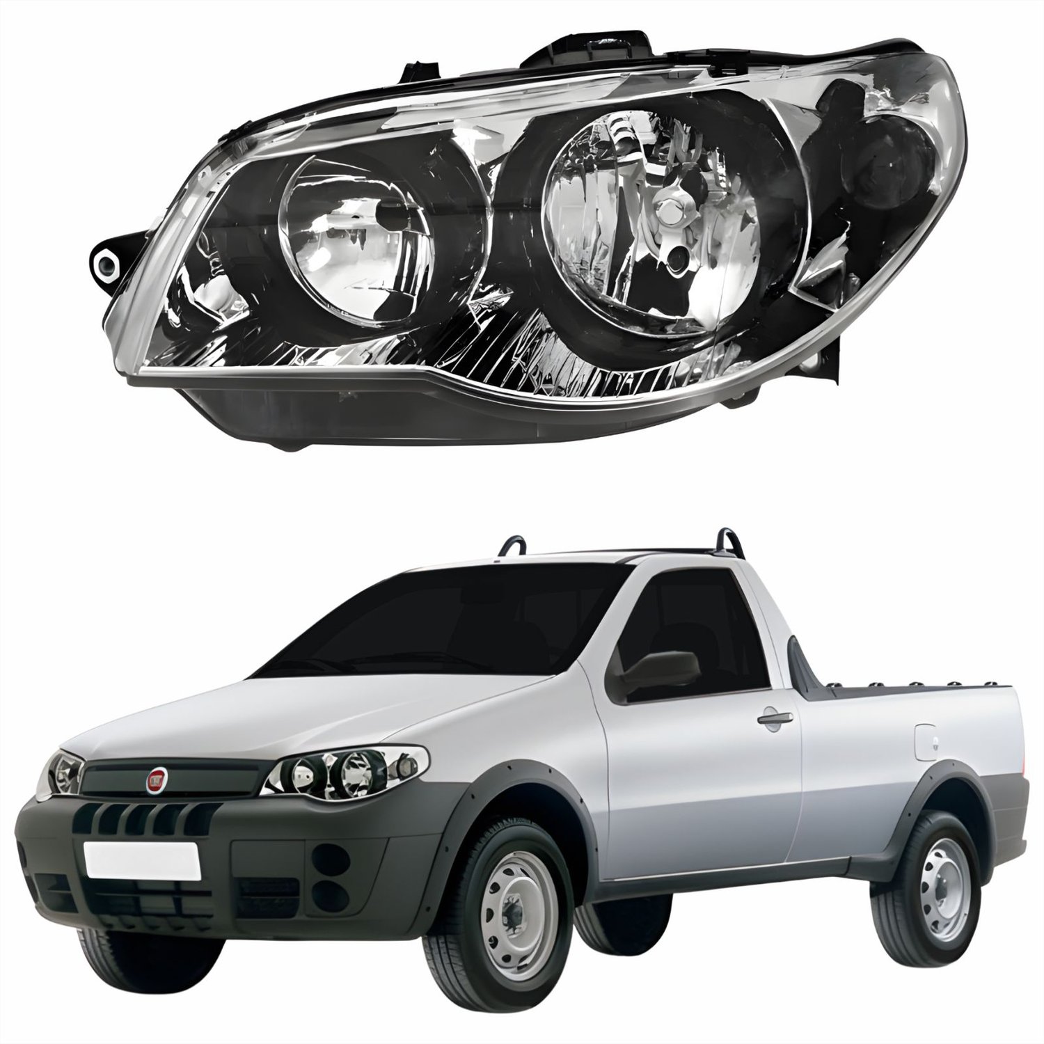 Farol Principal Fiat Strada 2004 Até Máscara Cromada Anel Negro Lado Esquerdo Motorista