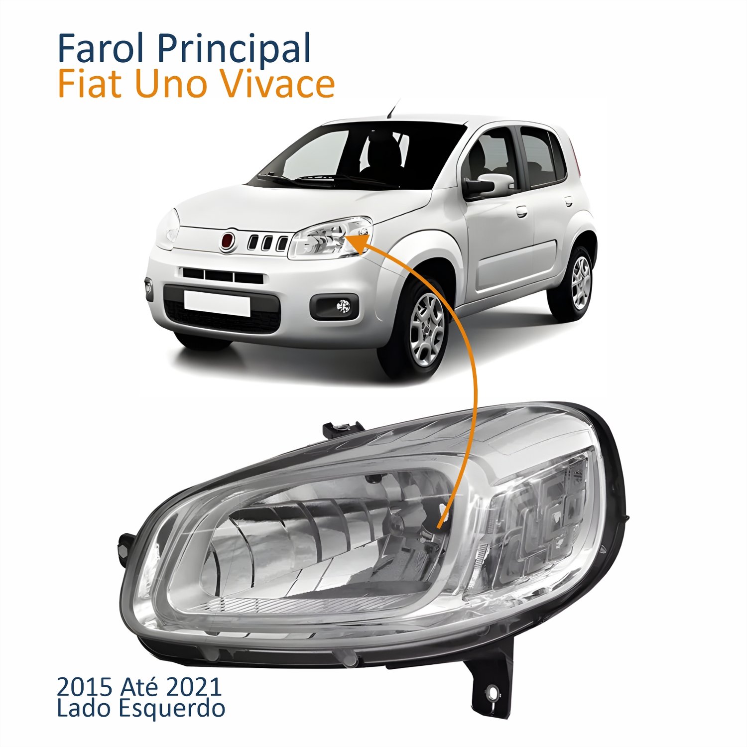 Farol Principal Fiat Uno Vivace 2015 Até 2021 Cromado Lado Esquerdo Motorista