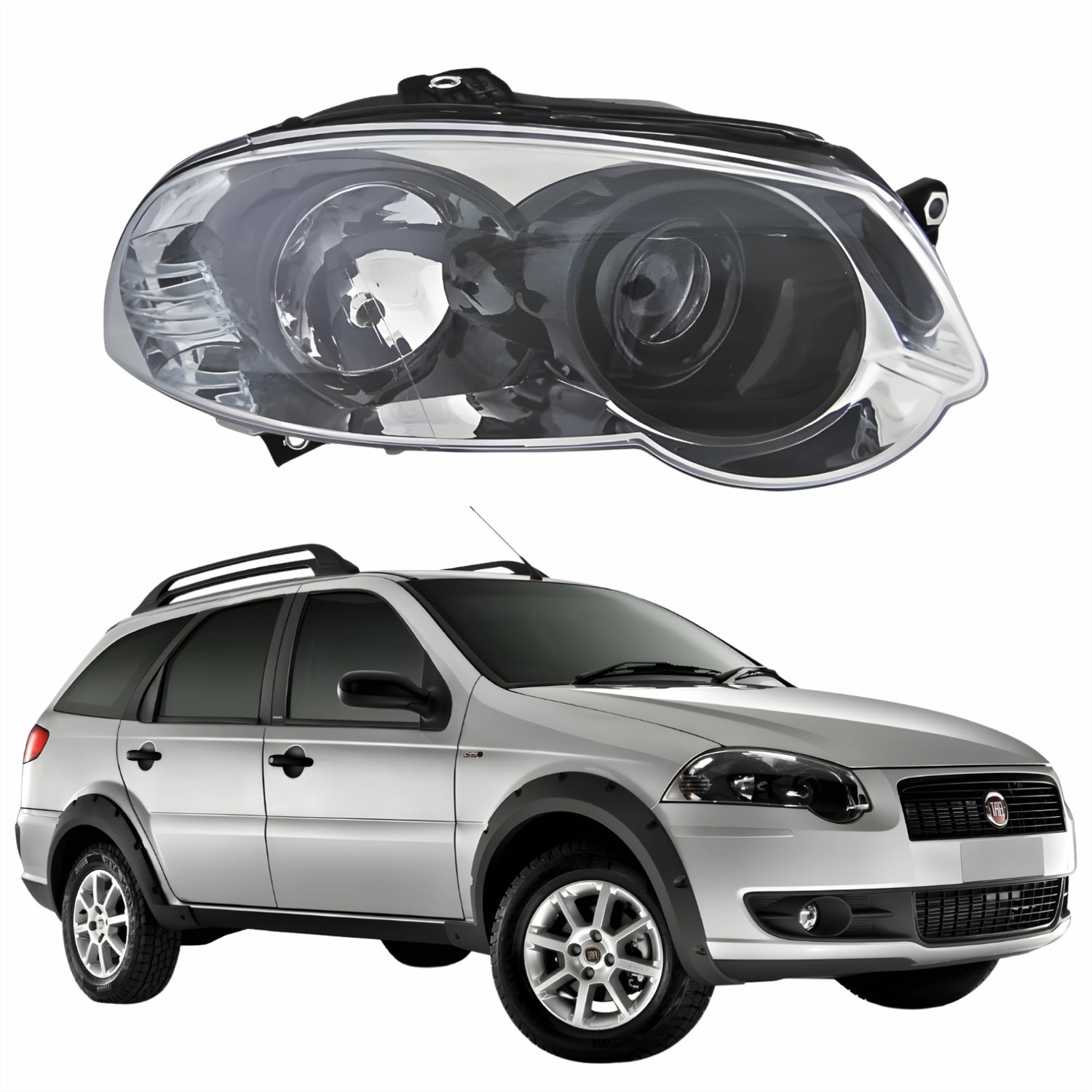 Farol Principal Fiat Palio Siena Strada Weekend 2008 Até 2012 Máscara Cromada Anel Negro Lado Direito Passageiro
