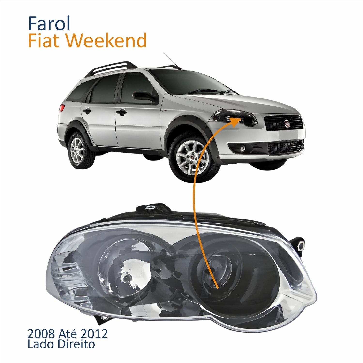 Farol Principal Fiat Weekend 2008 Até 2012 Máscara Cromada Anel Negro Lado Direito Passageiro