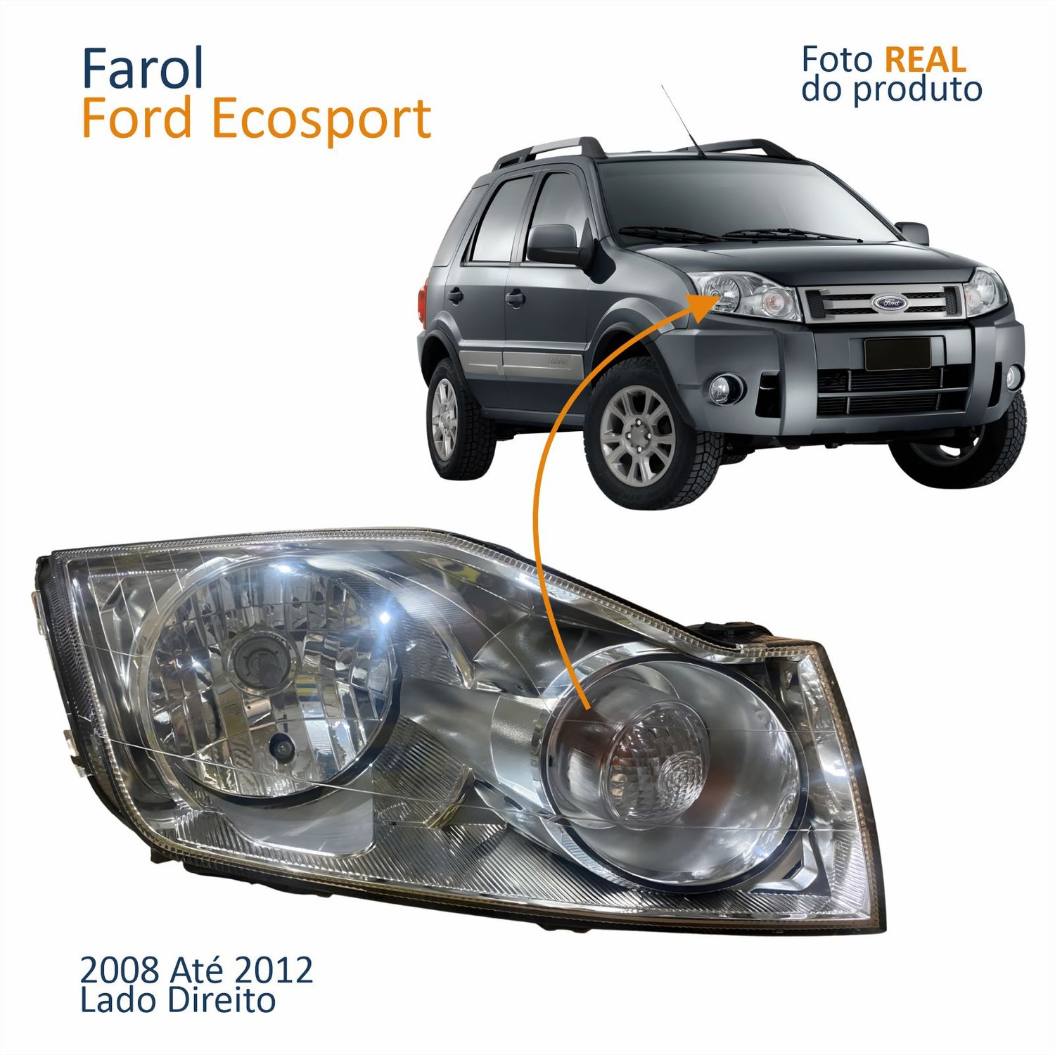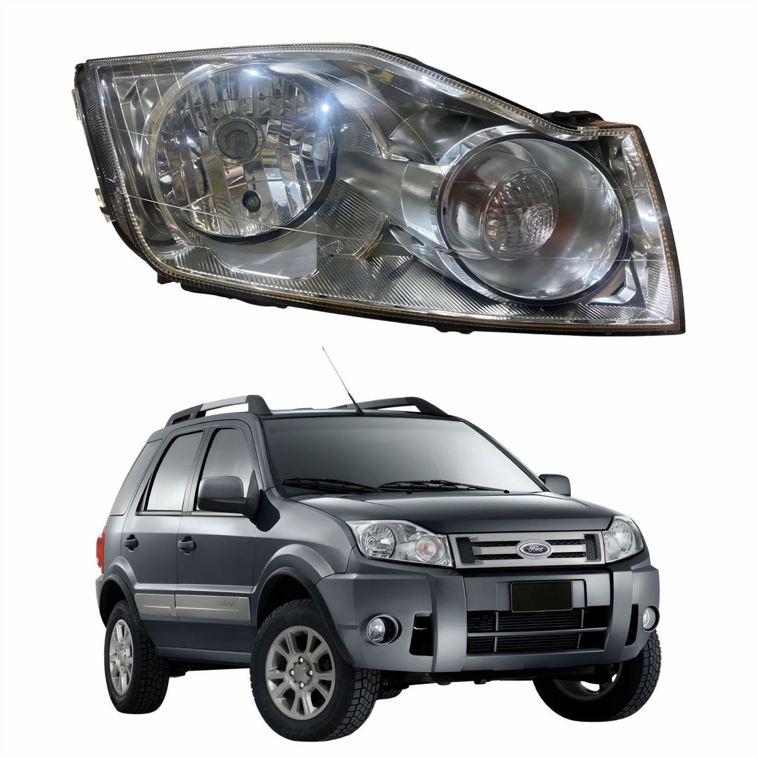 Farol Principal Ford Ecosport 2008 2009 2010 2011 2012 Cromado Lado Direito Passageiro