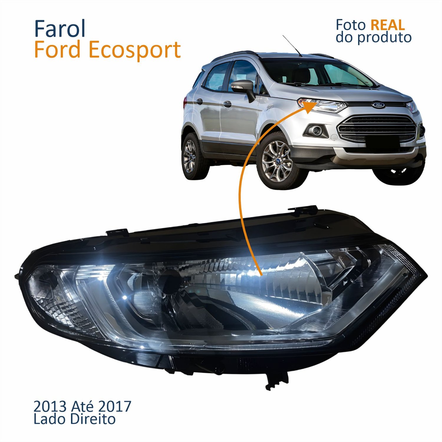 Farol Principal Ford Ecosport 2013 2014 2015 2016 2017 Cromado Lado Direito Passageiro