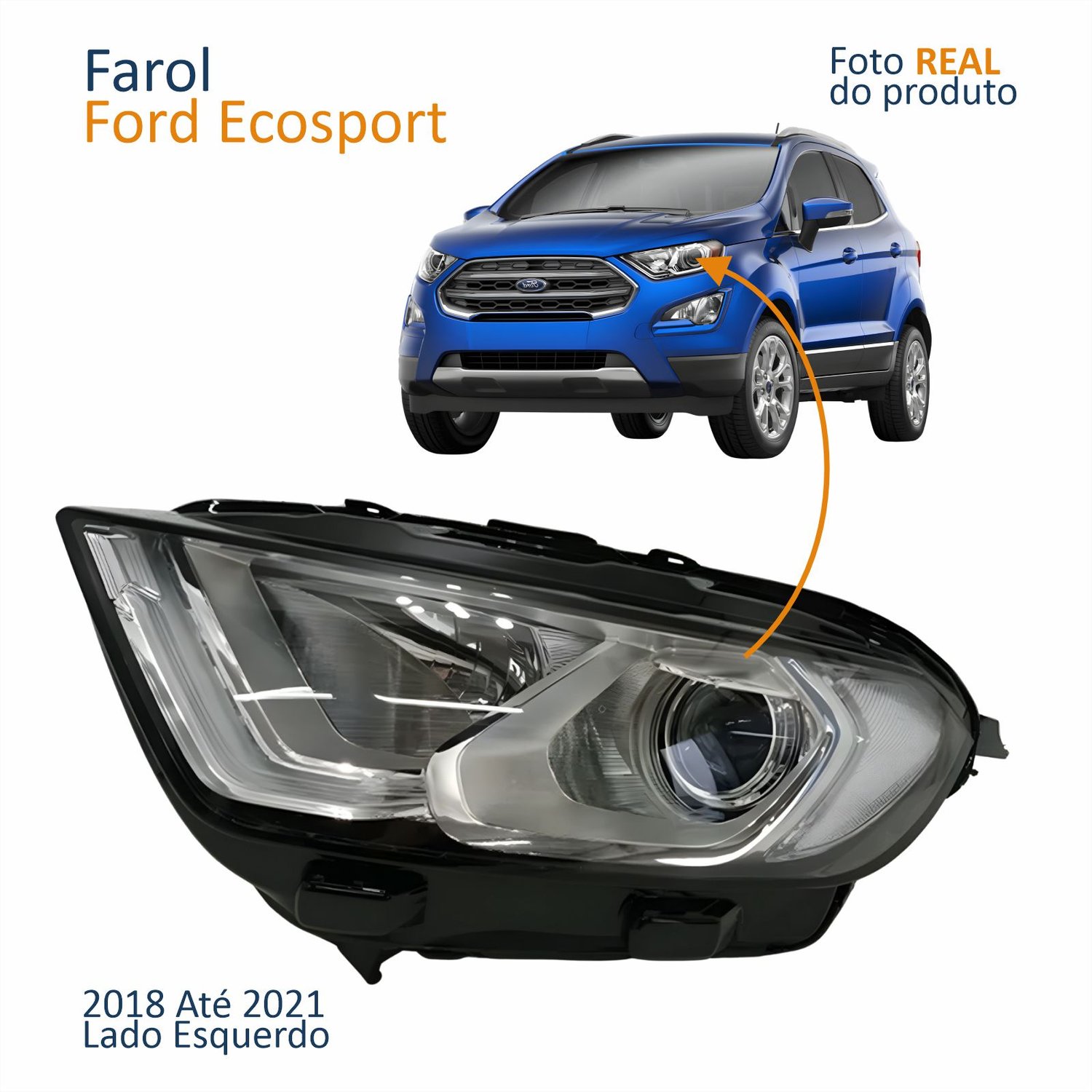Farol Principal Ford Ecosport 2018 2019 2020 2021 Máscara Cromada Com Led Lado Esquerdo Motorista
