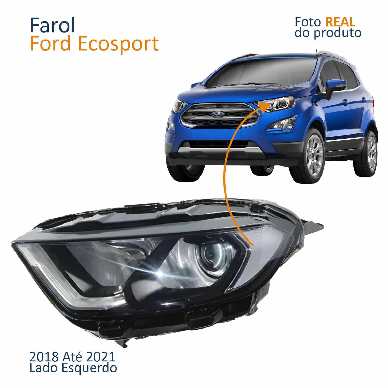 Farol Principal Ford Ecosport 2018 2019 2020 2021 Máscara Negra Com Led Lado Esquerdo Motorista