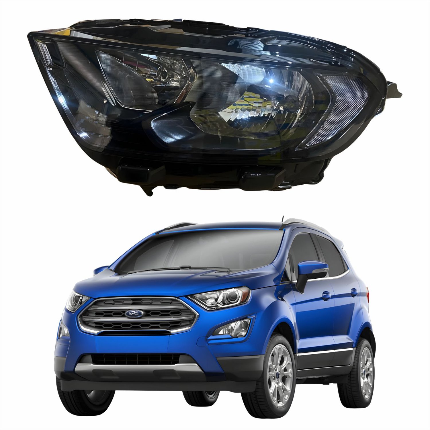 Farol Principal Ford Ecosport 2018 2019 2020 2021 Máscara Negra Sem Led Lado Esquerdo Motorista