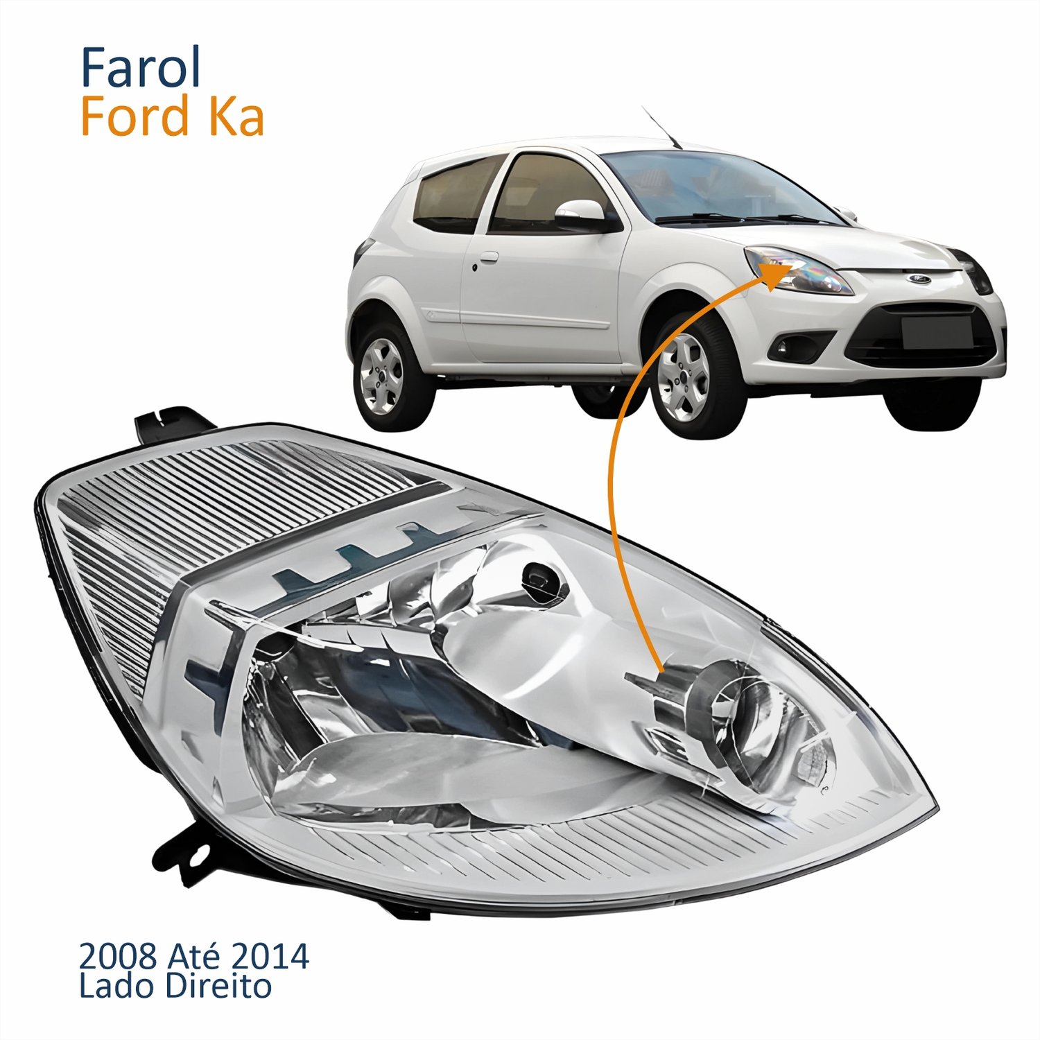 Farol Principal Ford Ka 2008 Até 2014 Máscara Cromada Lado Direito Passageiro