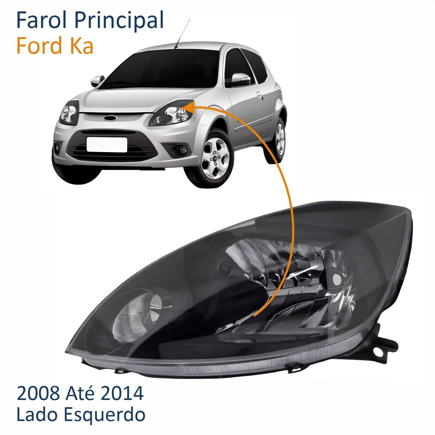 Farol Principal Ford Ka 2008 Até 2014 Máscara Negra Lado Esquerdo Motorista