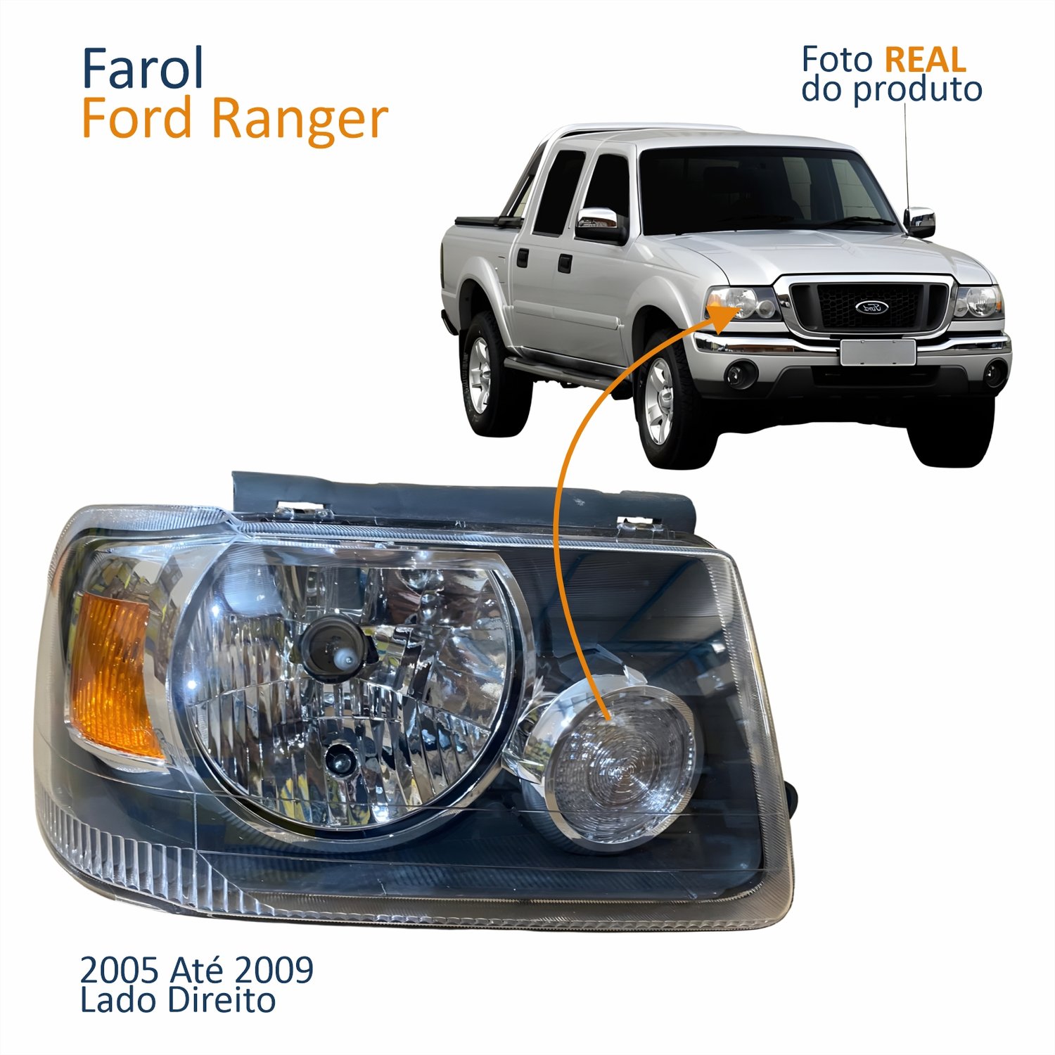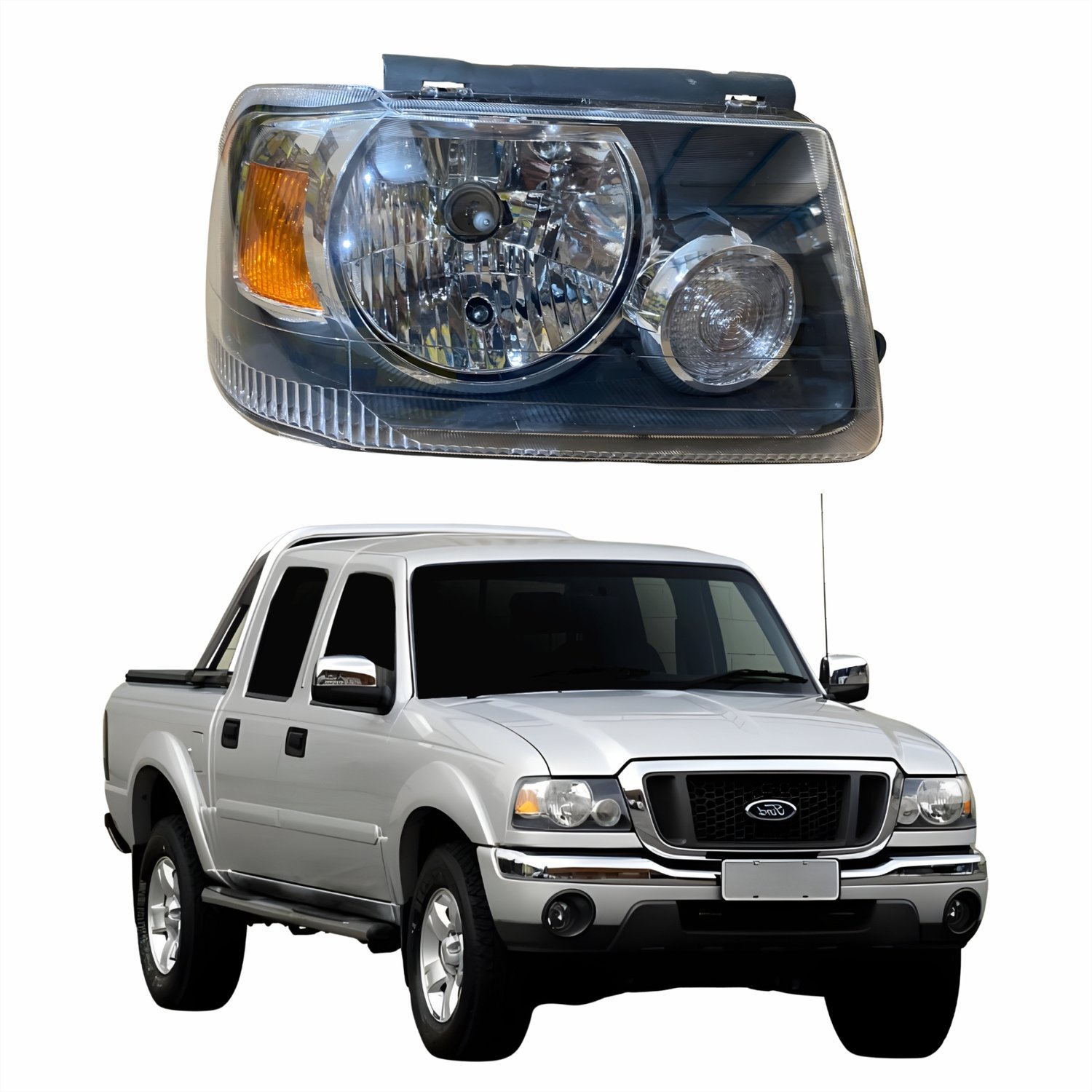 Farol Principal Ford Ranger 2005 Até 2009 Máscara Negra Pisca Âmbar Lado Direito Passageiro