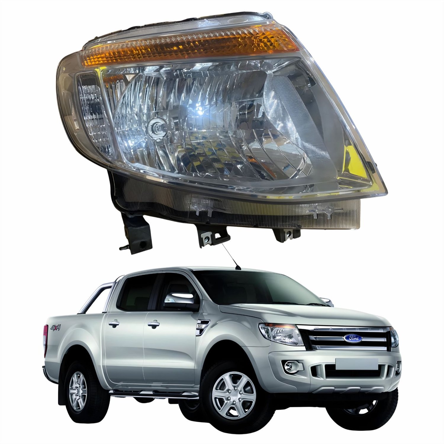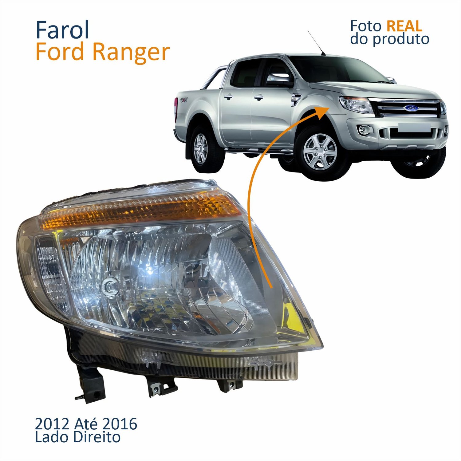 Farol Principal Ford Ranger 2012 Até 2016 Máscara Cromada Pisca Âmbar Com Motor Lado Direito Passageiro
