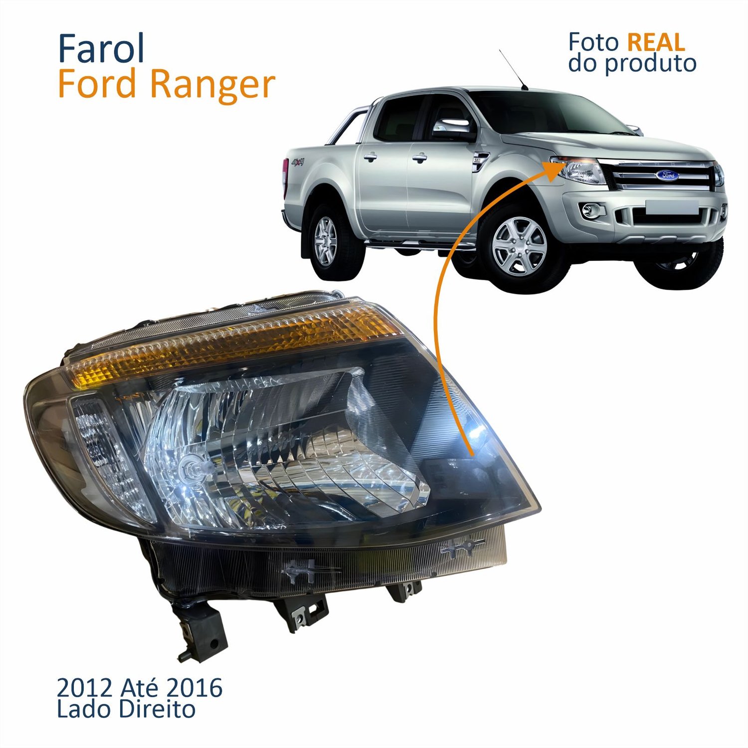 Farol Principal Ford Ranger 2012 Até 2016 Máscara Negra Pisca Âmbar Lado Direito Passageiro