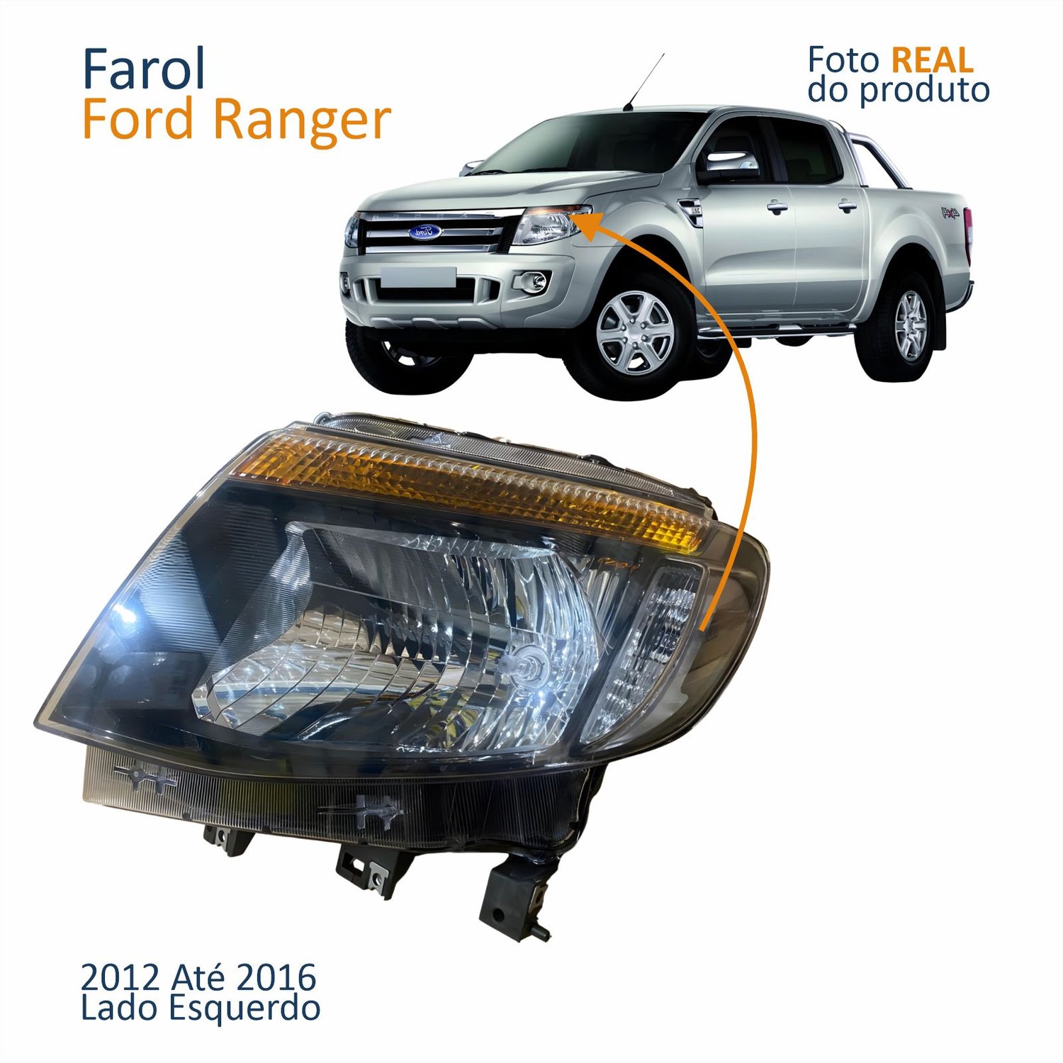 Farol Principal Ford Ranger 2012 Até 2016 Máscara Negra Pisca Âmbar Lado Esquerdo Motorista