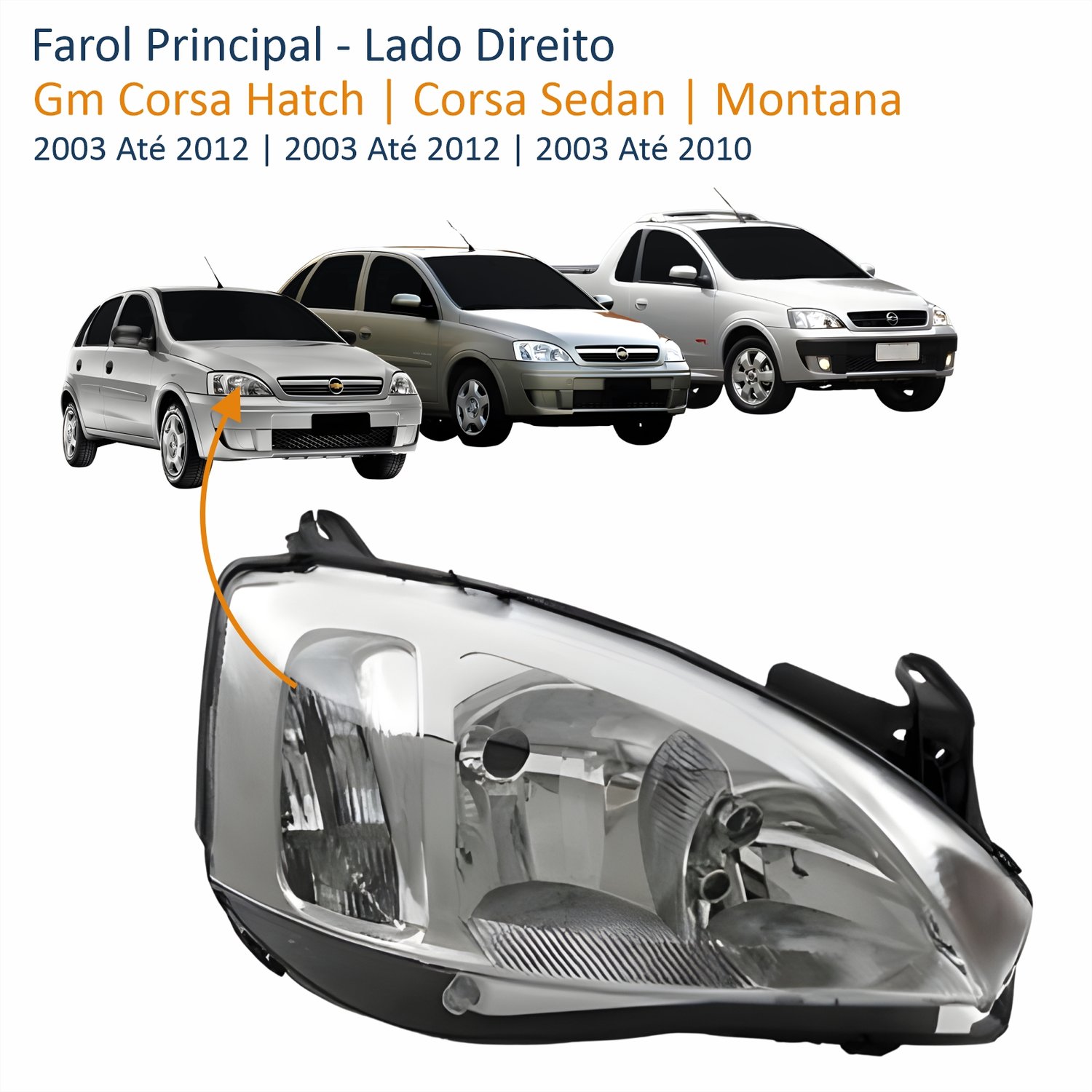 Farol Principal Gm Corsa 2003 Até 2012 Montana 2003 Até 2010 Pisca Raiado Máscara Cromada Lado Direito Passageiro