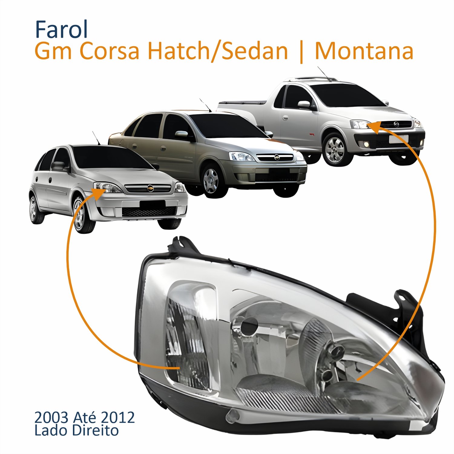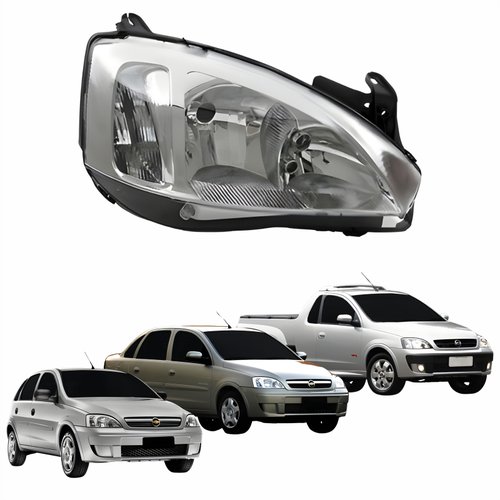 Farol Principal Gm Corsa 2003 Até 2012 Montana 2003 Até 2010 Pisca Raiado Máscara Cromada Lado Direito Passageiro