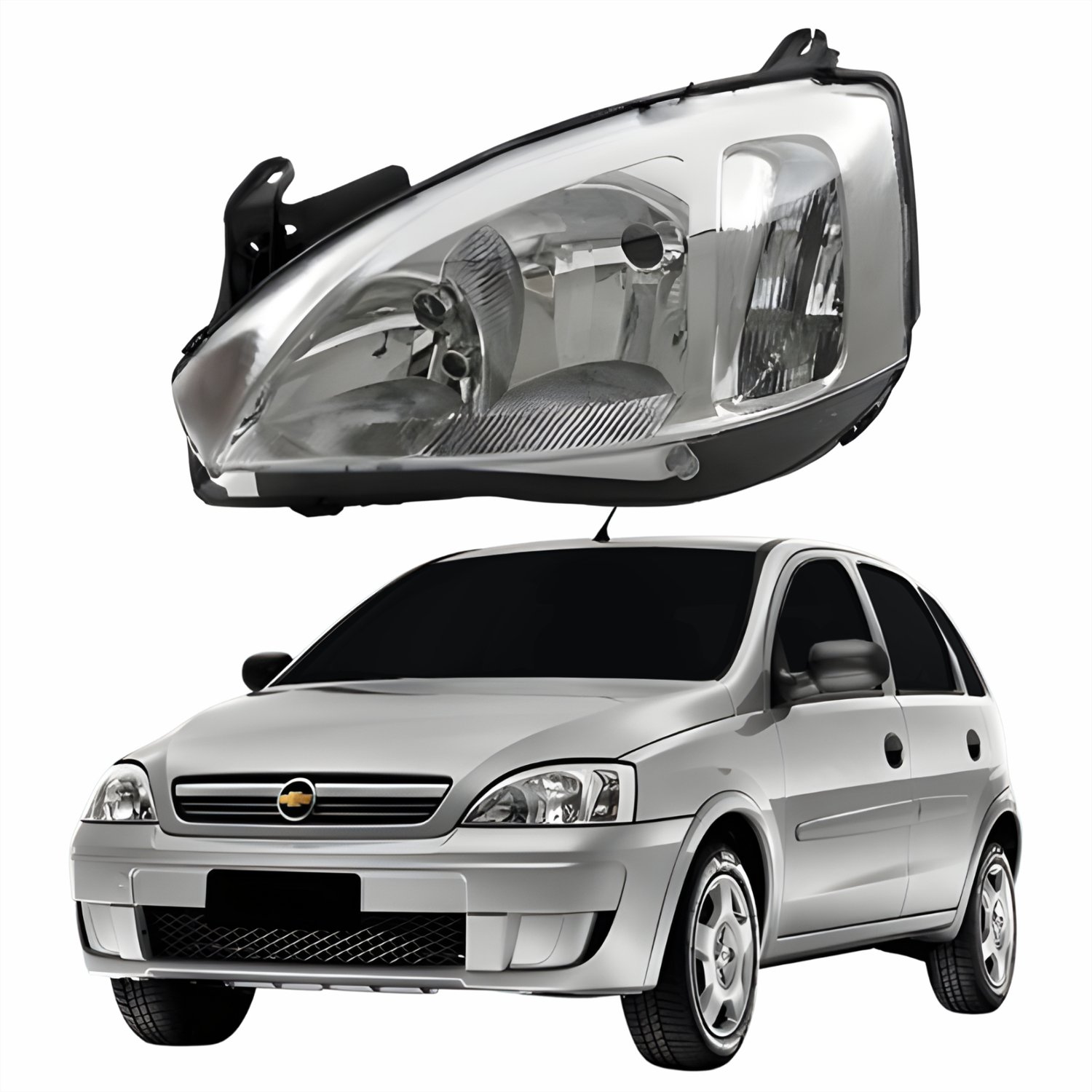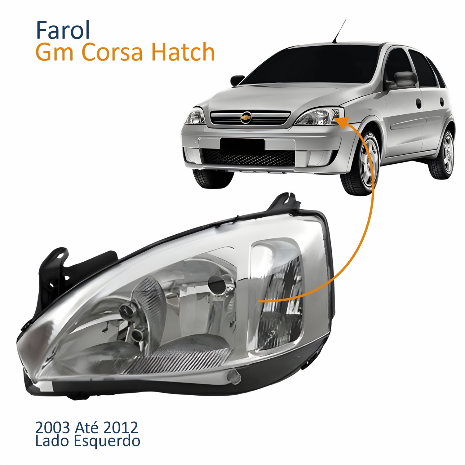 Farol Principal Gm Corsa Hatch 2003 Até 2012 Pisca Raiado Máscara Cromada Lado Esquerdo Motorista