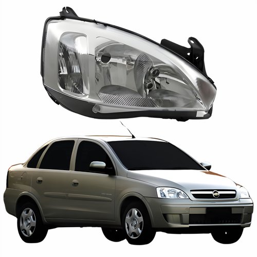 Farol Principal Gm Corsa Sedan 2003 Até 2012 Pisca Raiado Máscara Cromada Lado Direito Passageiro