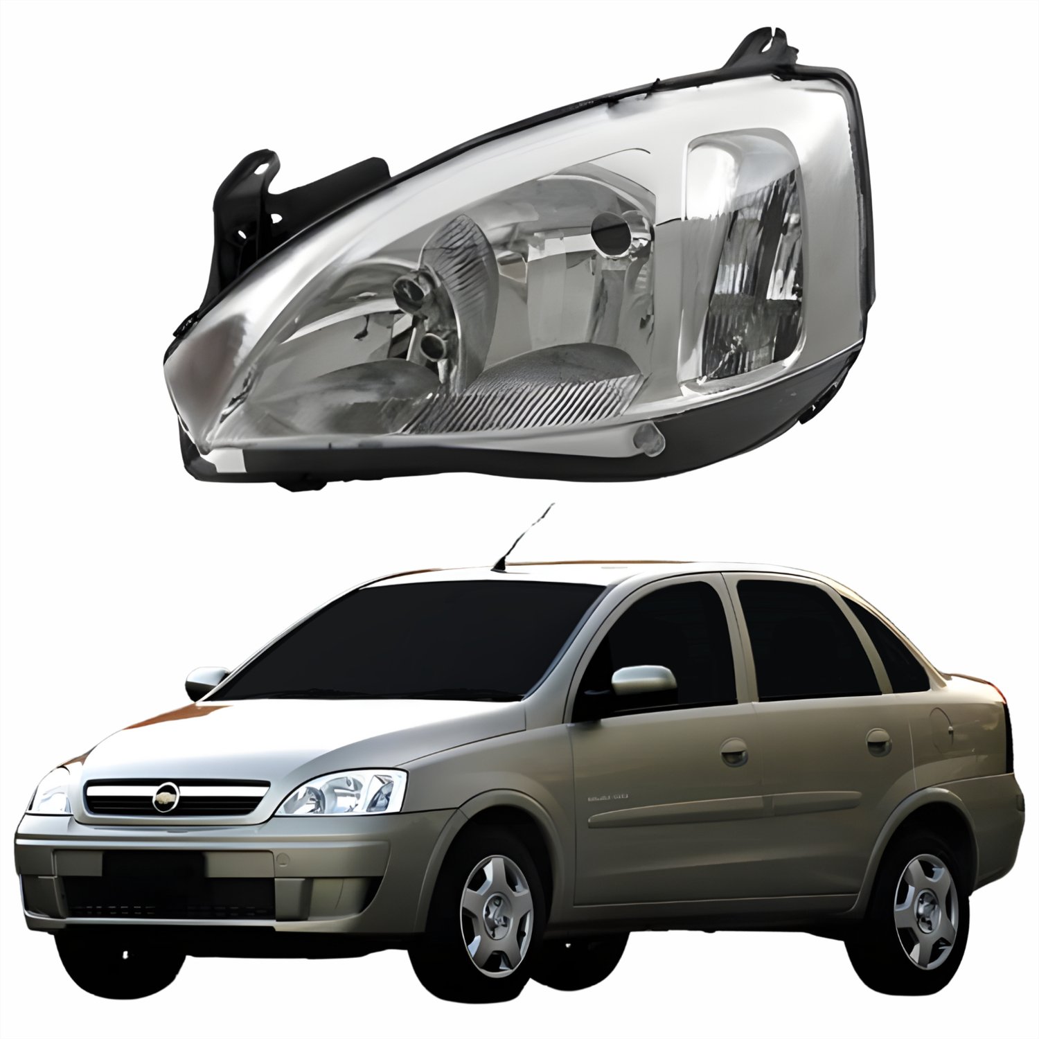 Farol Principal Gm Corsa Sedan 2003 Até 2012 Pisca Raiado Máscara Cromada Lado Esquerdo Motorista