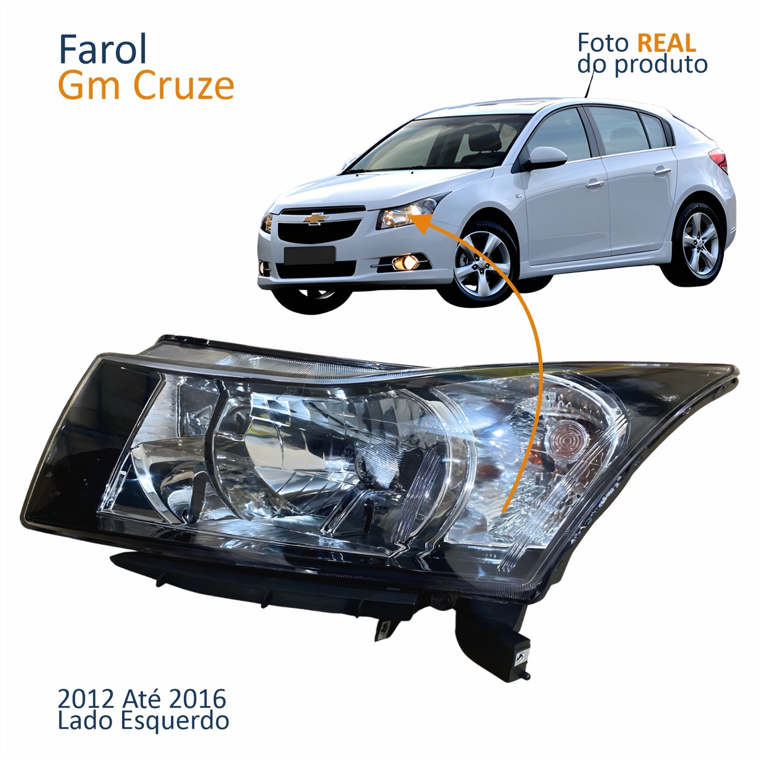 Farol Principal Gm Cruze 2012 2013 2014 2015 2016 Máscara Negra Lado Esquerdo Motorista