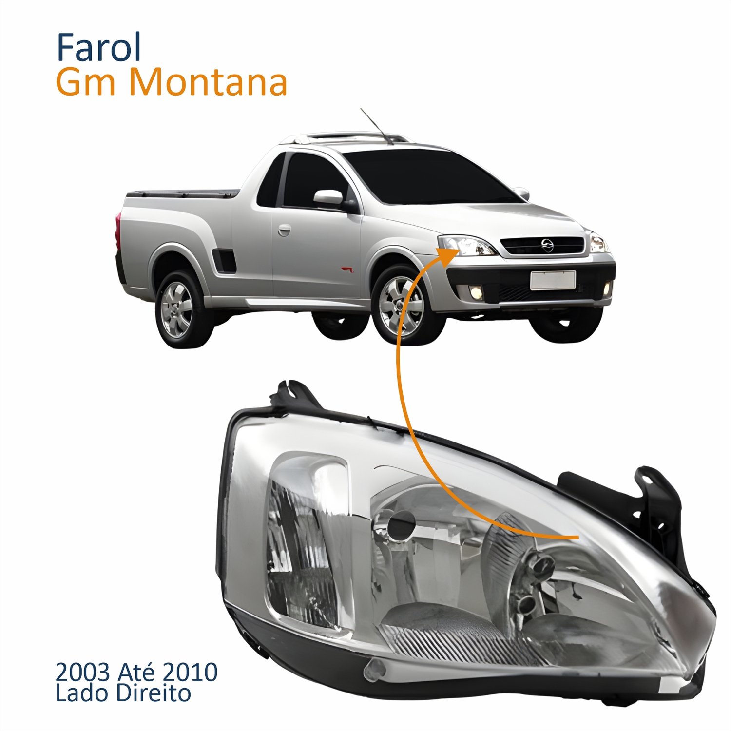 Farol Principal Gm Montana 2003 Até 2010 Pisca Raiado Máscara Cromada Lado Direito Passageiro