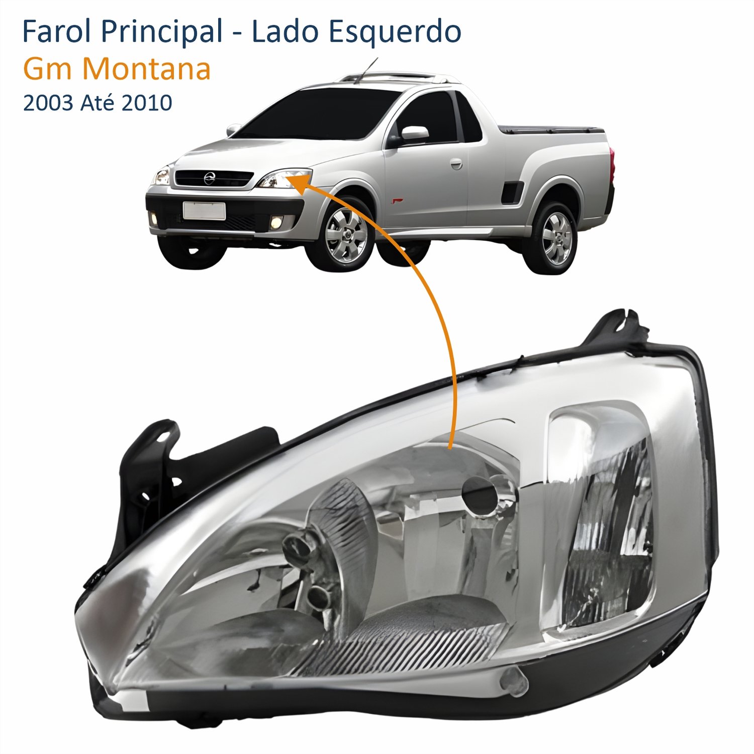 Farol Principal Gm Montana 2003 Até 2010 Pisca Raiado Máscara Cromada Lado Esquerdo Motorista
