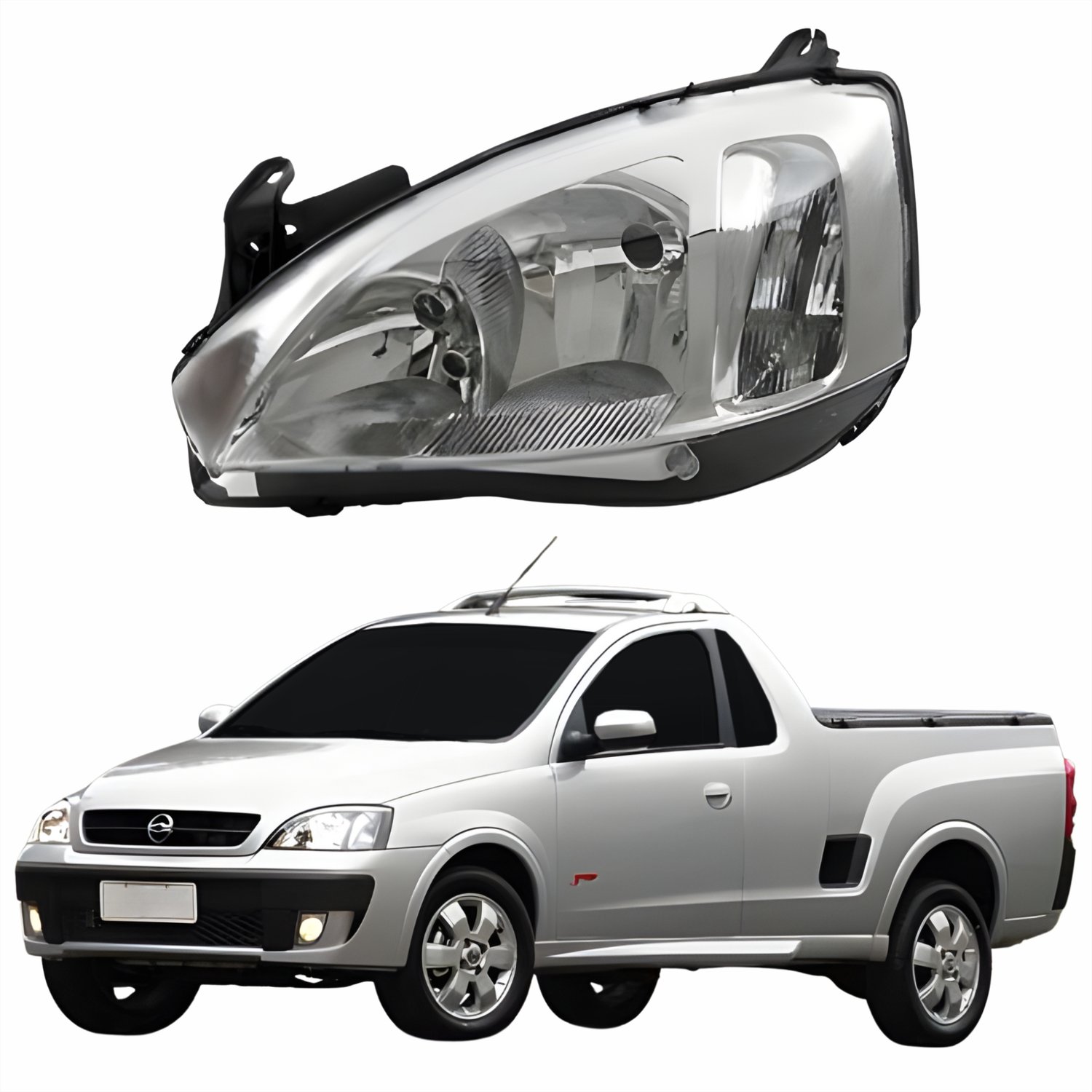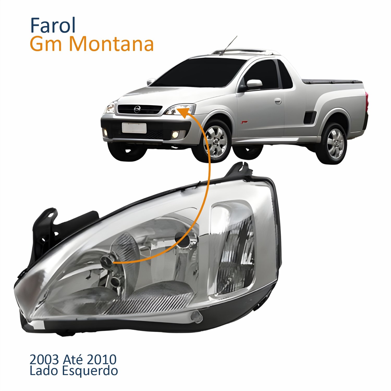 Farol Principal Gm Montana 2003 Até 2010 Pisca Raiado Máscara Cromada Lado Esquerdo Motorista