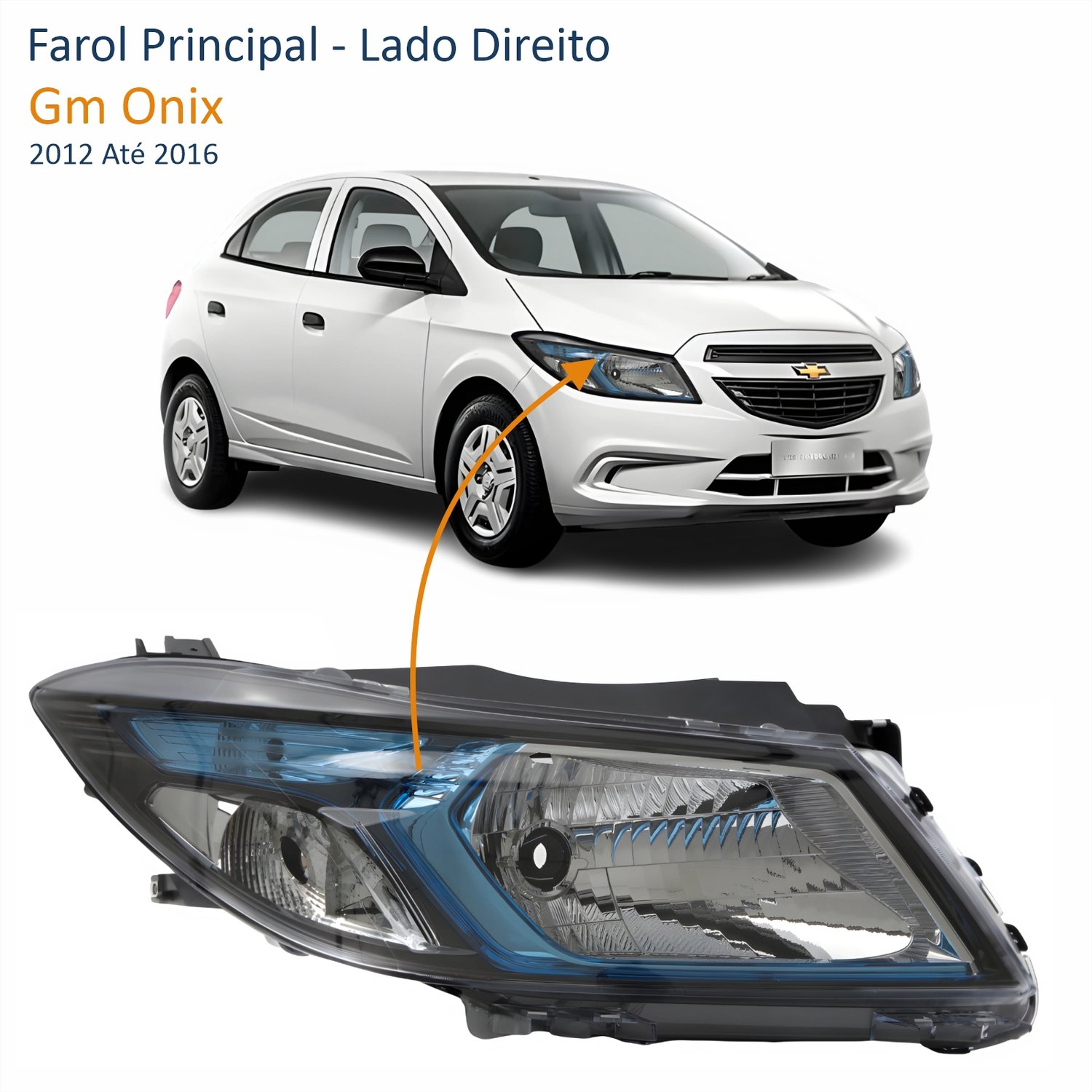 Farol Principal Gm Onix Prisma 2012 Até 2016 Máscara Negra Friso Azul Lado Direito Passageiro Quant: 1x