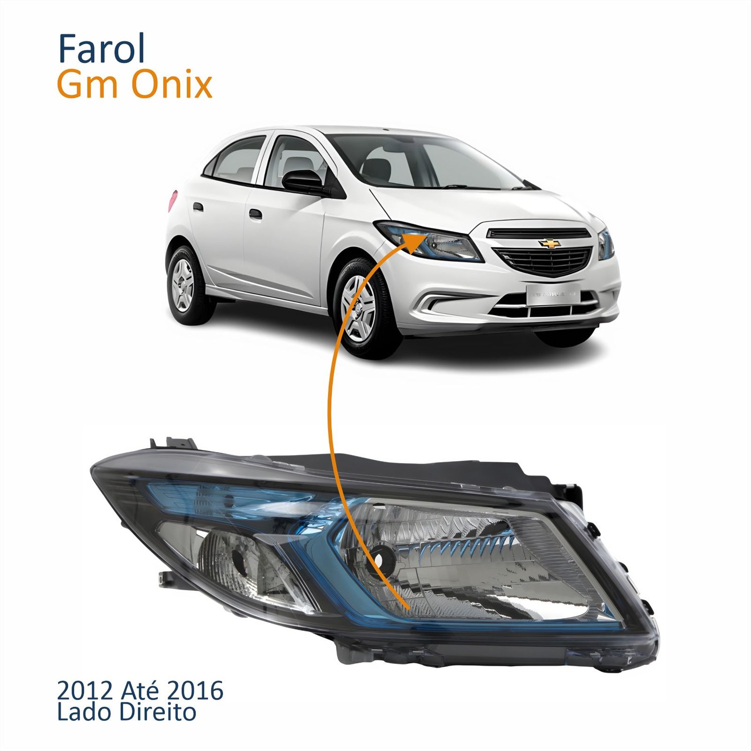 Farol Principal Gm Onix 2012 Até 2016 Máscara Negra Friso Azul Lado Direito Passageiro