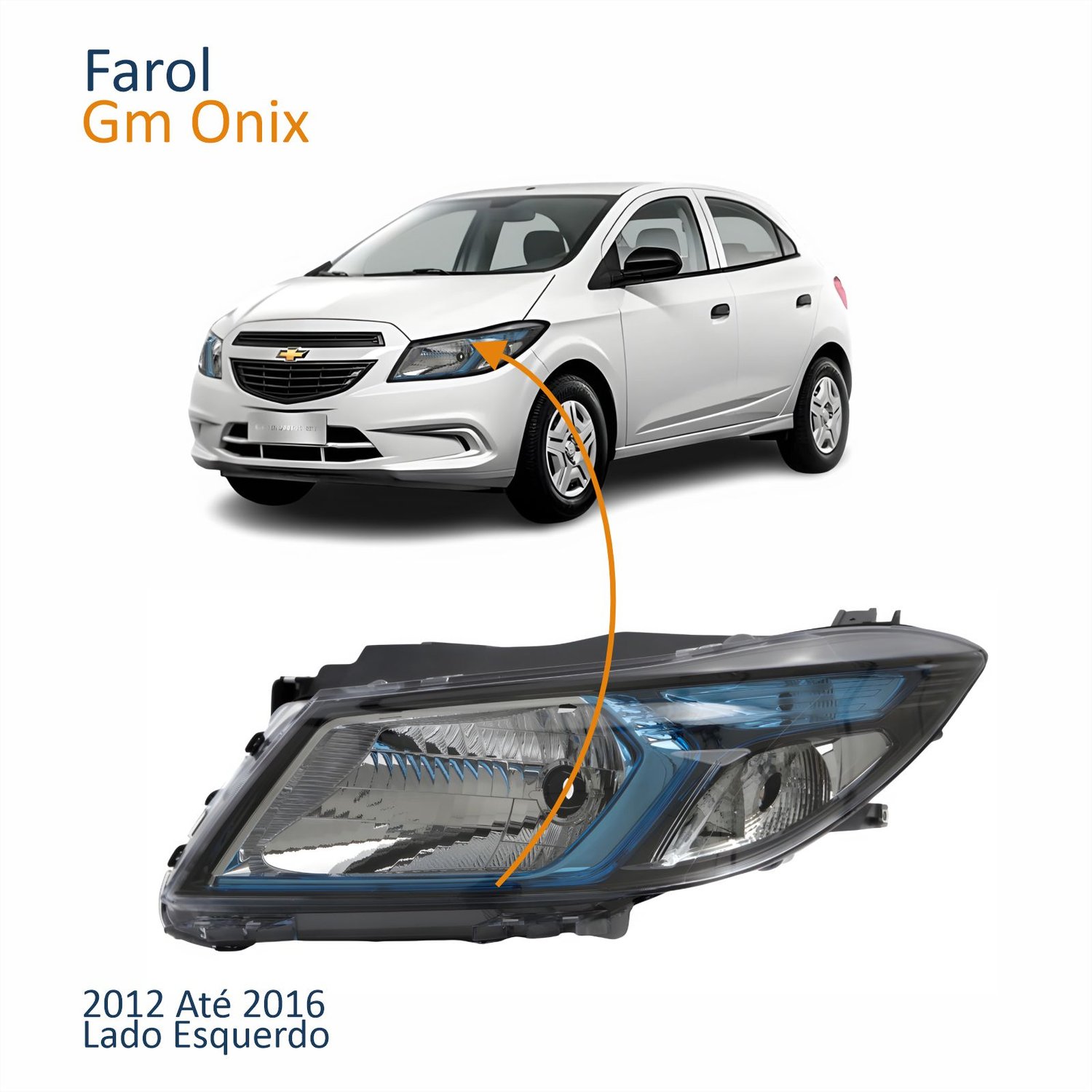 Farol Principal Gm Onix 2012 Até 2016 Máscara Negra Friso Azul Lado Esquerdo Motorista