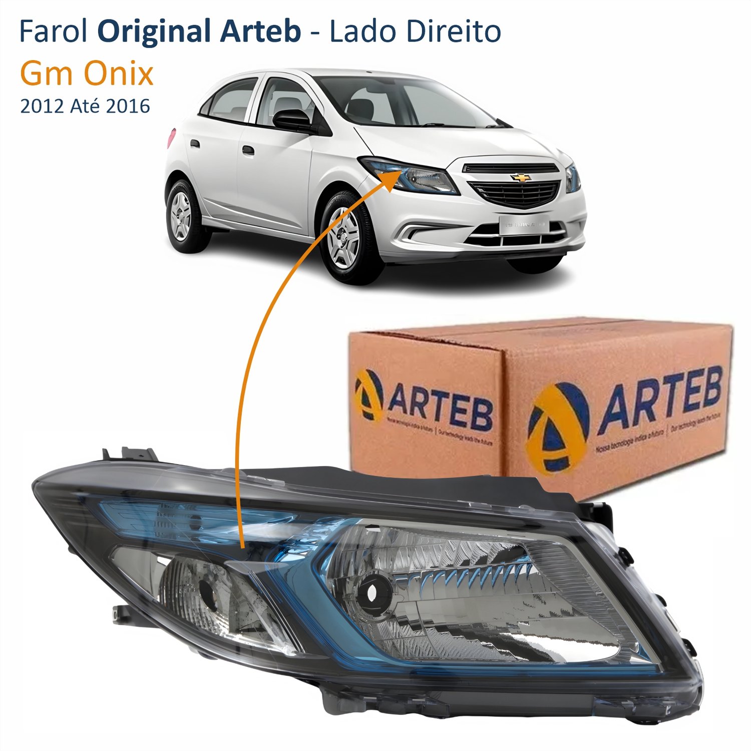 Farol Principal Gm Onix Prisma 2012 Até 2016 Original Arteb Máscara Negra Friso Azul Lado Direito PassageiroTamanho: Único