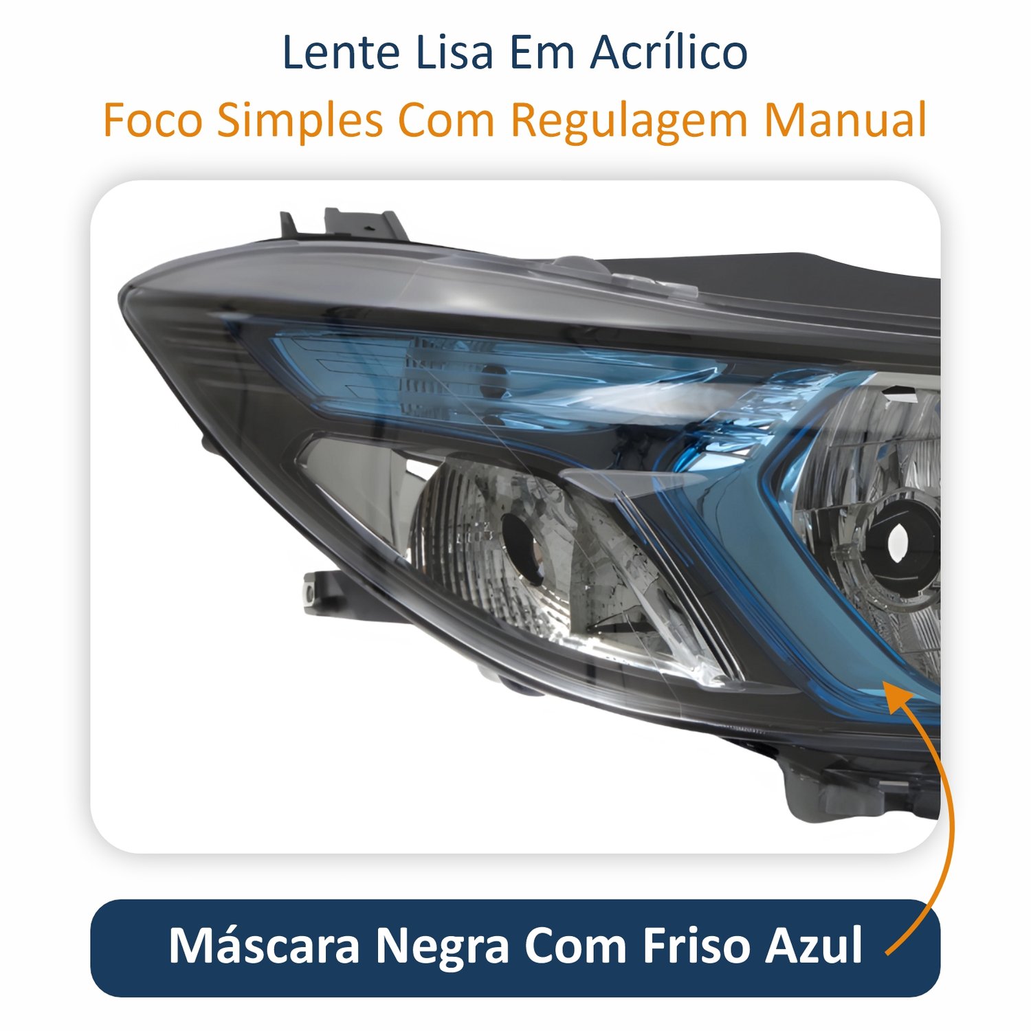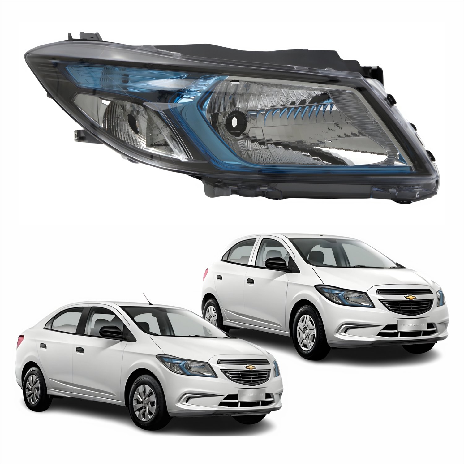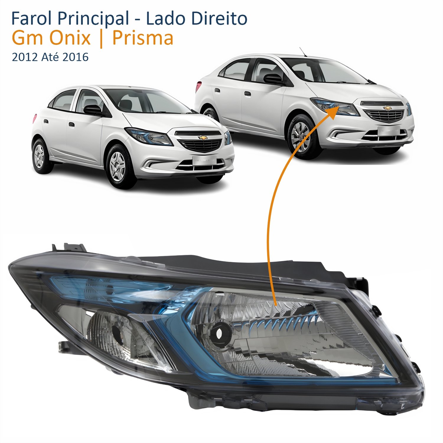Farol Principal Gm Onix Prisma 2012 Até 2016 Máscara Negra Friso Azul Lado Direito Passageiro
