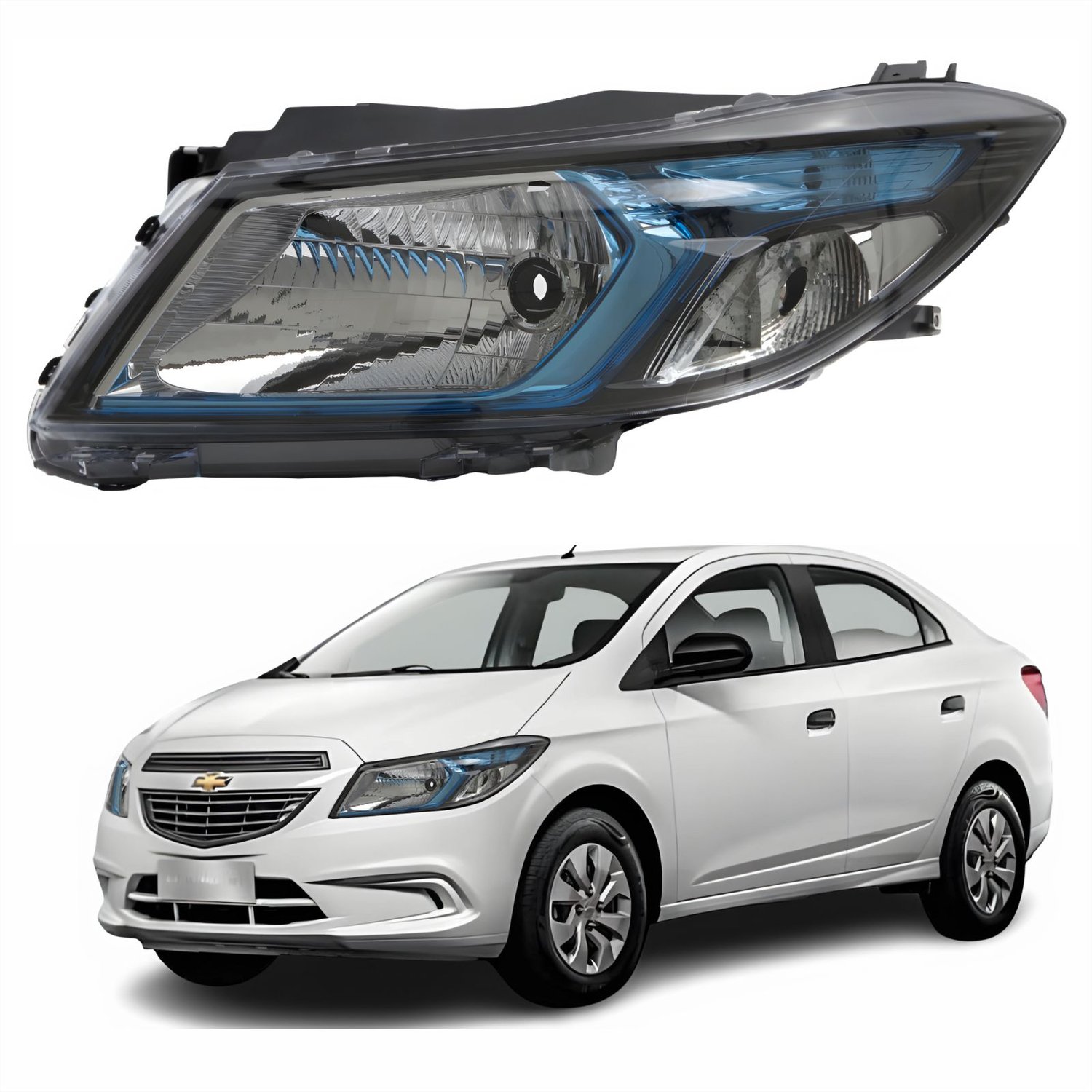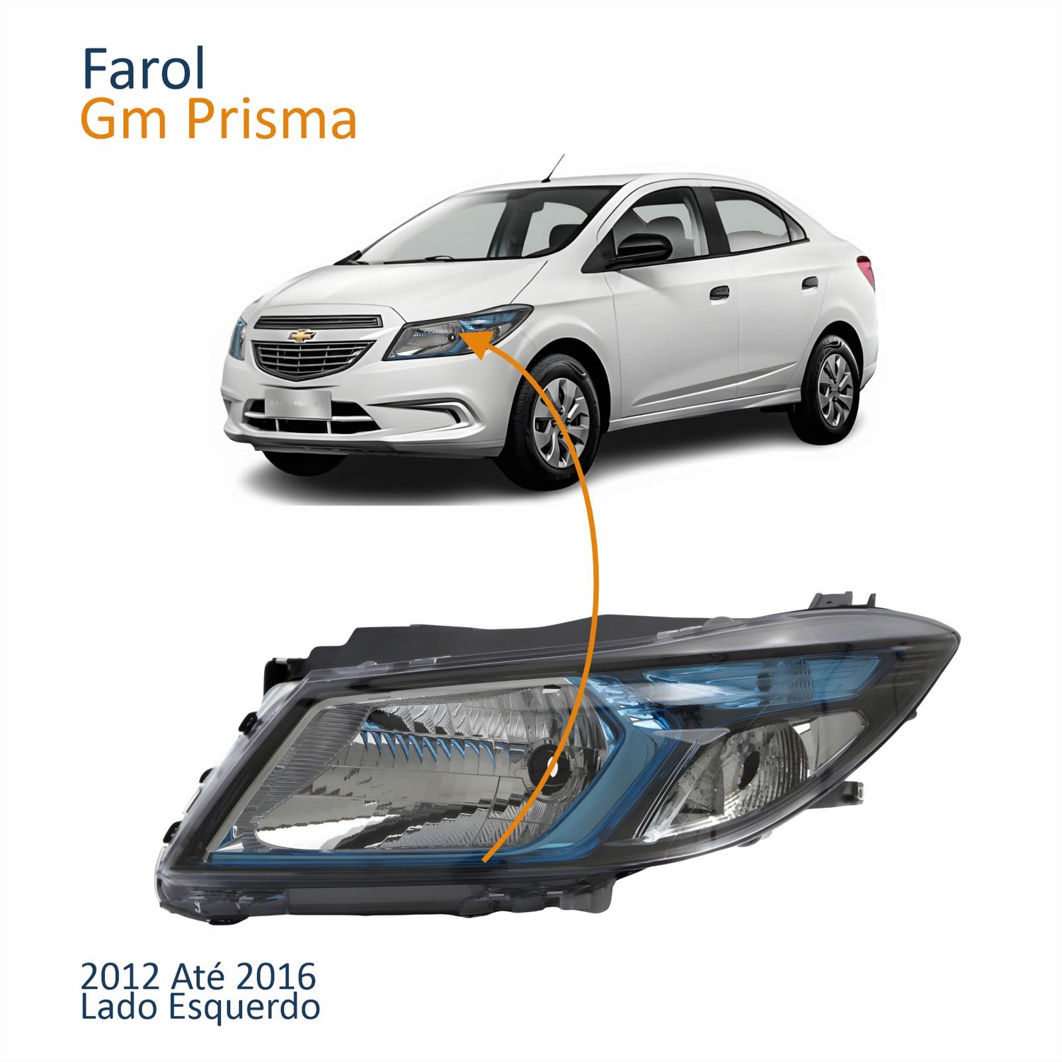 Farol Principal Gm Prisma 2012 Até 2016 Máscara Negra Friso Azul Lado Esquerdo Motorista