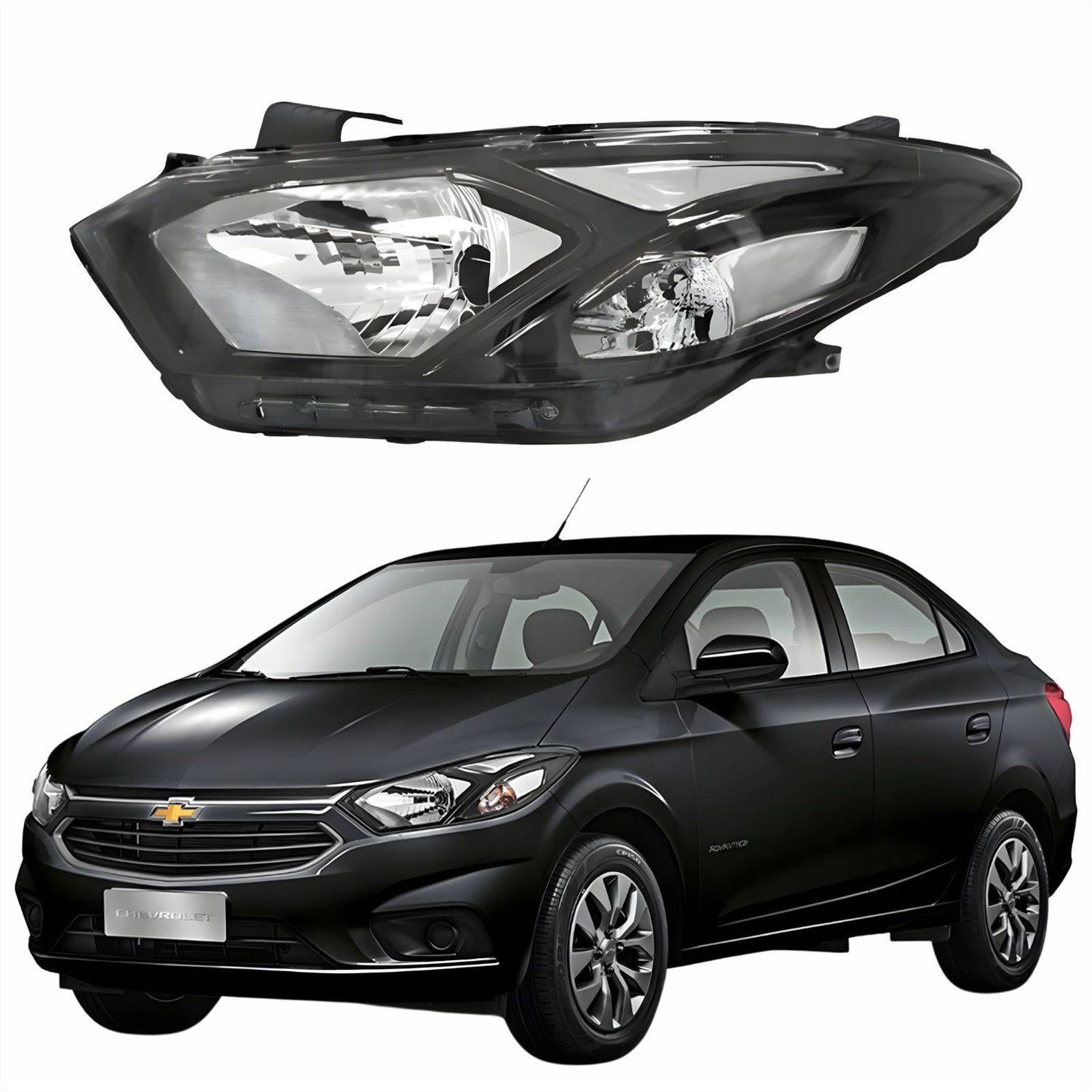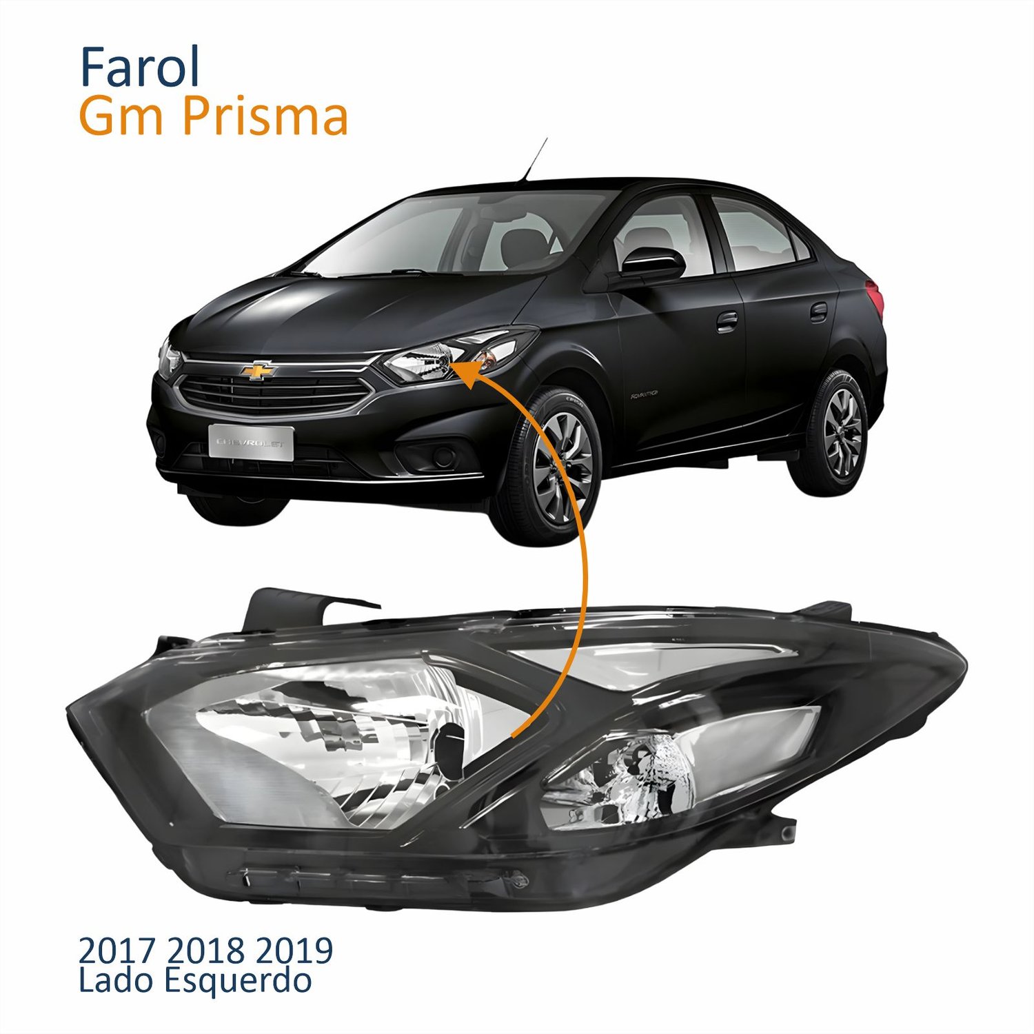 Farol Principal Gm Prisma 2017 2018 2019 Máscara Negra Lado Esquerdo Motorista