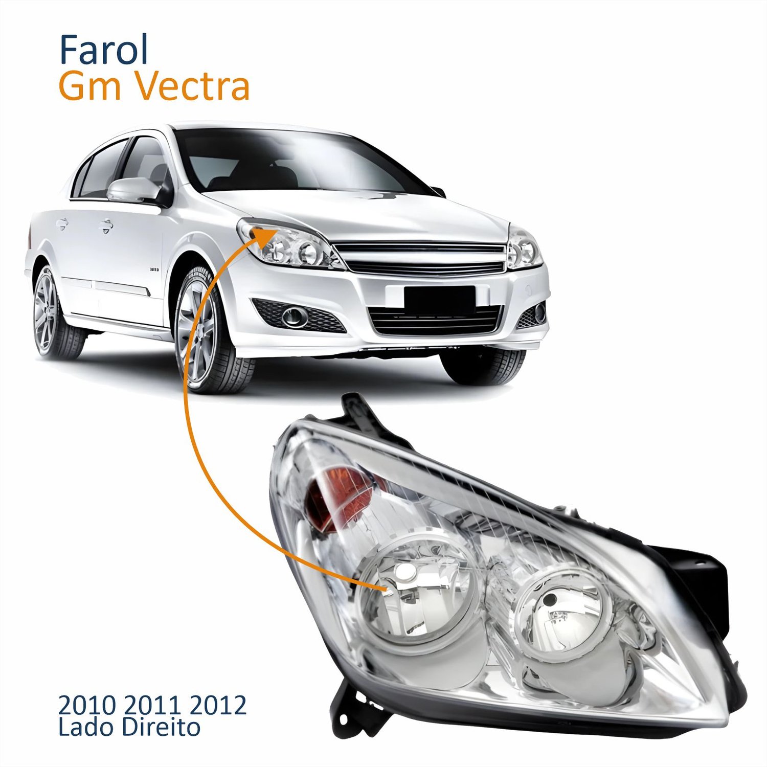 Farol Principal Gm Vectra 2010 2011 2012 Máscara Cromada Lado Direito Passageiro