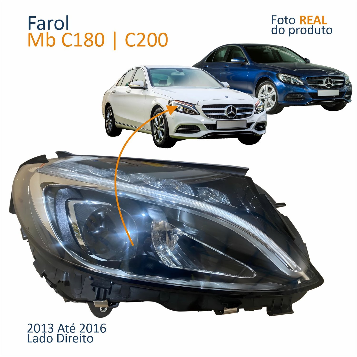 Farol Principal Mb C180 C200 2013 2014 2015 2016 Com Led Lado Direito Passageiro