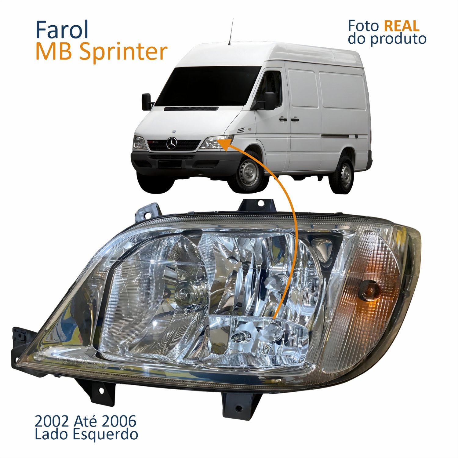 Farol Principal MB Sprinter 2002 2003 2004 2005 2006 Com Antineblina Lado Esquerdo Motorista