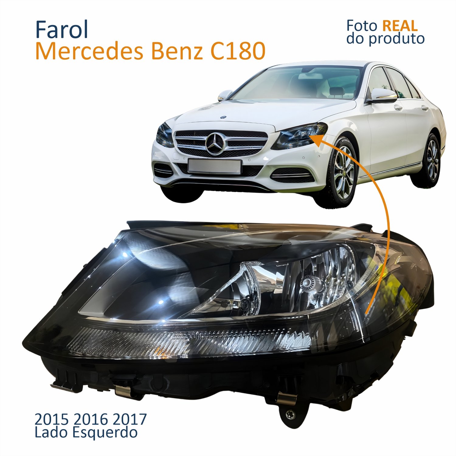 Farol Principal Mercedes Benz C180 2015 2016 2017 Sem Led Lado Esquerdo Motorista
