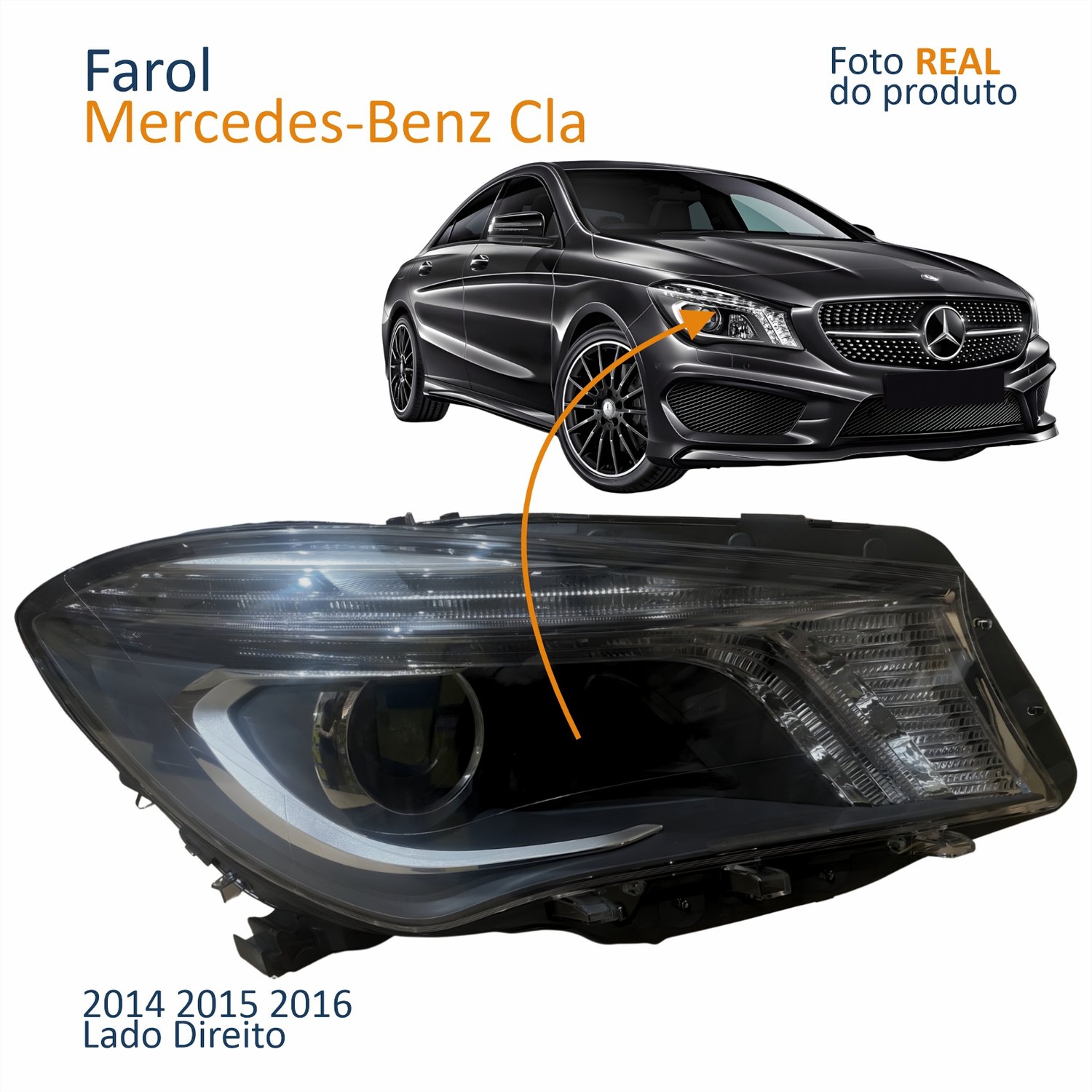 Farol Principal Mercedes Benz Cla 2014 2015 2016 Com Led Máscara Negra Lado Direito Passageiro