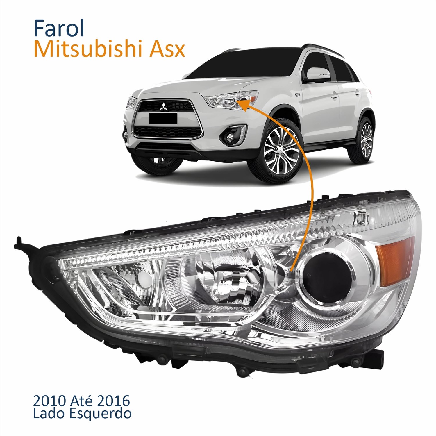 Farol Principal Mitsubishi Asx 2010 Até 2016 Máscara Cromada Lado Esquerdo Motorista