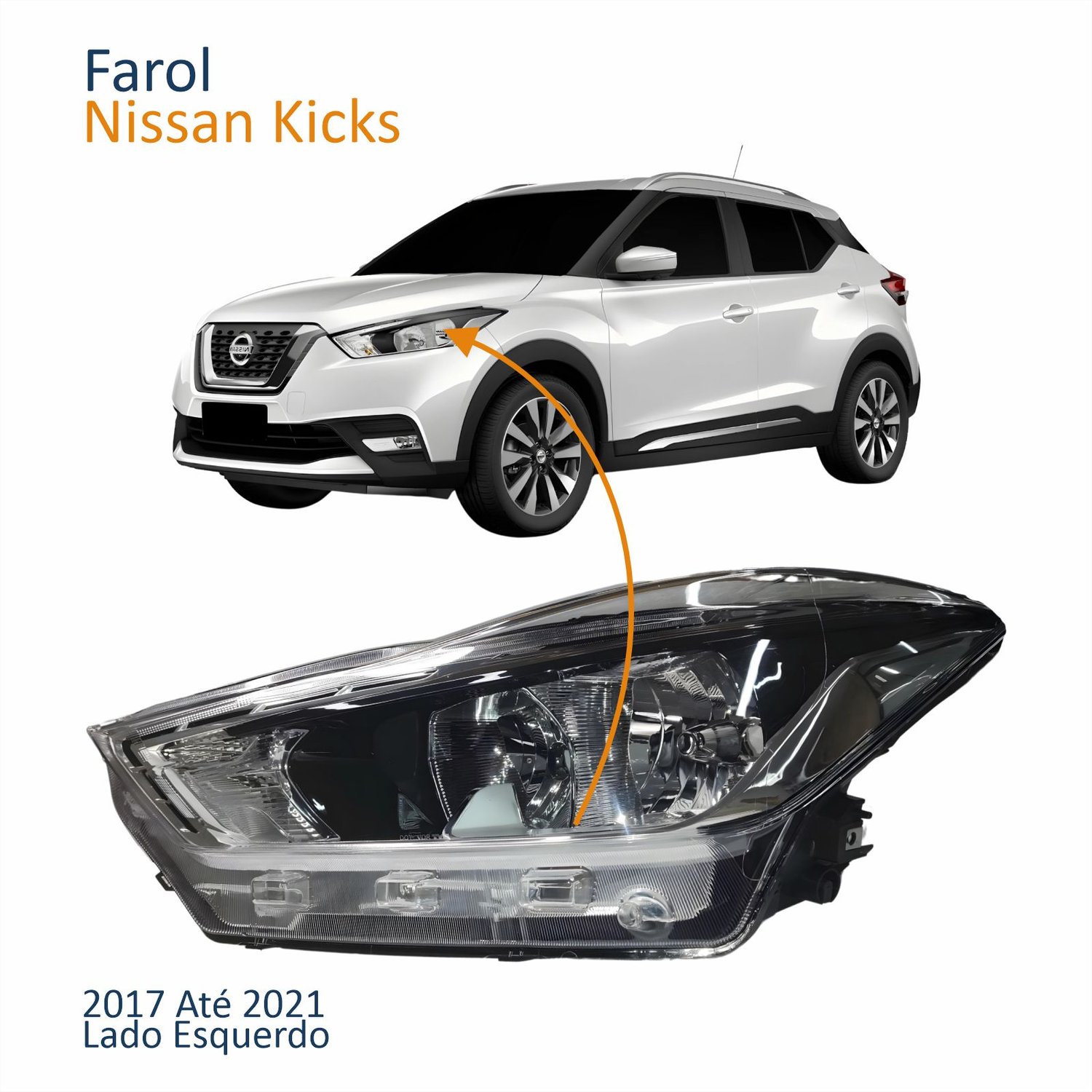 Farol Principal Nissan Kicks 2017 Até 2021 Máscara Cromada Lado Esquerdo Motorista