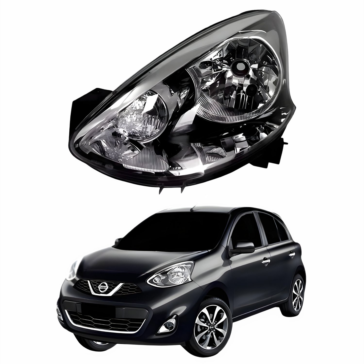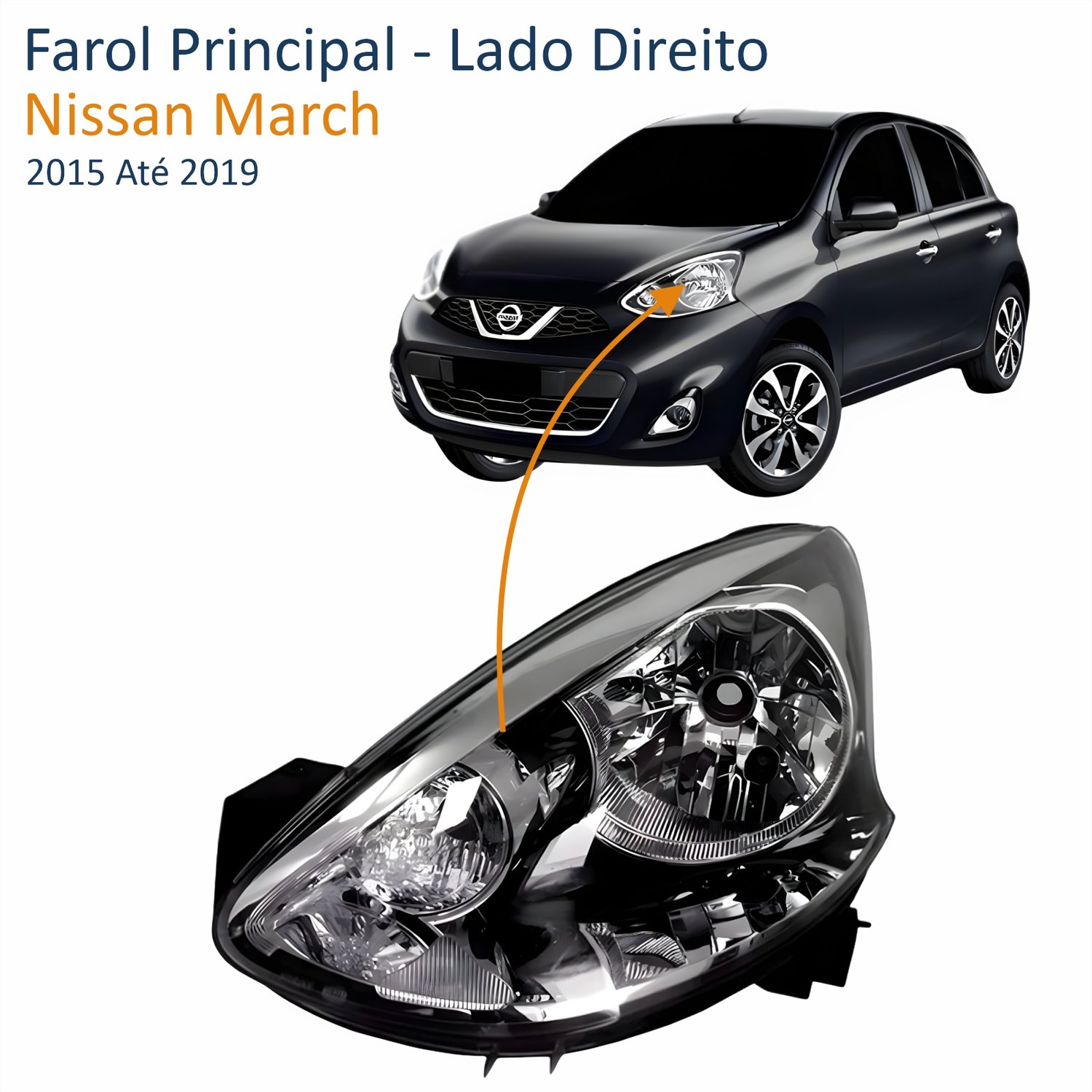 Farol Principal Nissan March 2015 Até 2019 Preto Com Cromado Lado Esquerdo Motorista
